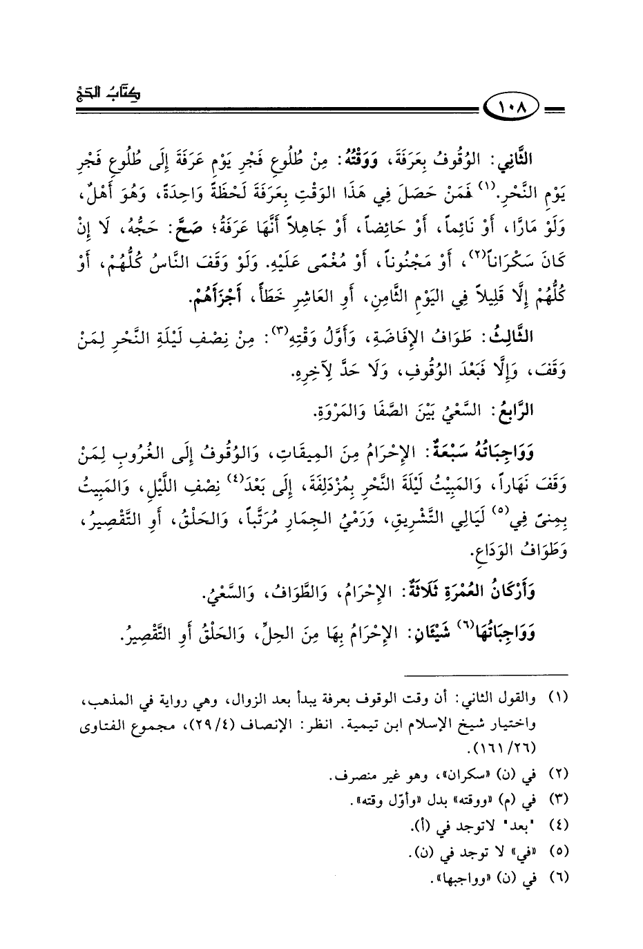١ والقول الثاني: أن وقت الوقوف بعرفة يبدأ بعد الزوال, وهي رواية في المذهب واختيار شيخ الإسلام ابن تيمية: انظر: الإنصاف "٤/٢٩", مجموع الفتاوى "٢٦/١٦١".