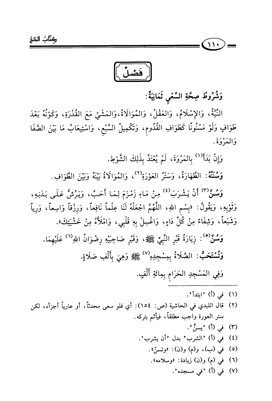٢ قال اللبدي في حاشية "ص: ١٥٤": أي فلو سعى محدثا, أو عاريا أجزاه لكن ستر العورة واجب مطلقا, فيأثم بتركه.