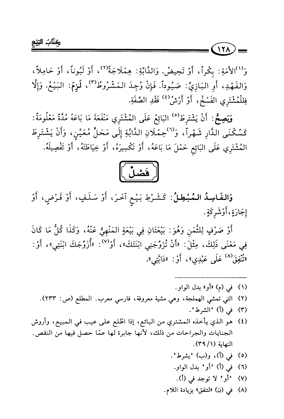 و١الأمة: بكرا أو تحيض والدابة هملاجة٢ أو لبونا أو حاملا والفهد أو البازي: صيودا فإن وجد المشروط٣ لزم البيع وإلا فللمشتري الفسخ أو أوش٤ فقد الصفة.