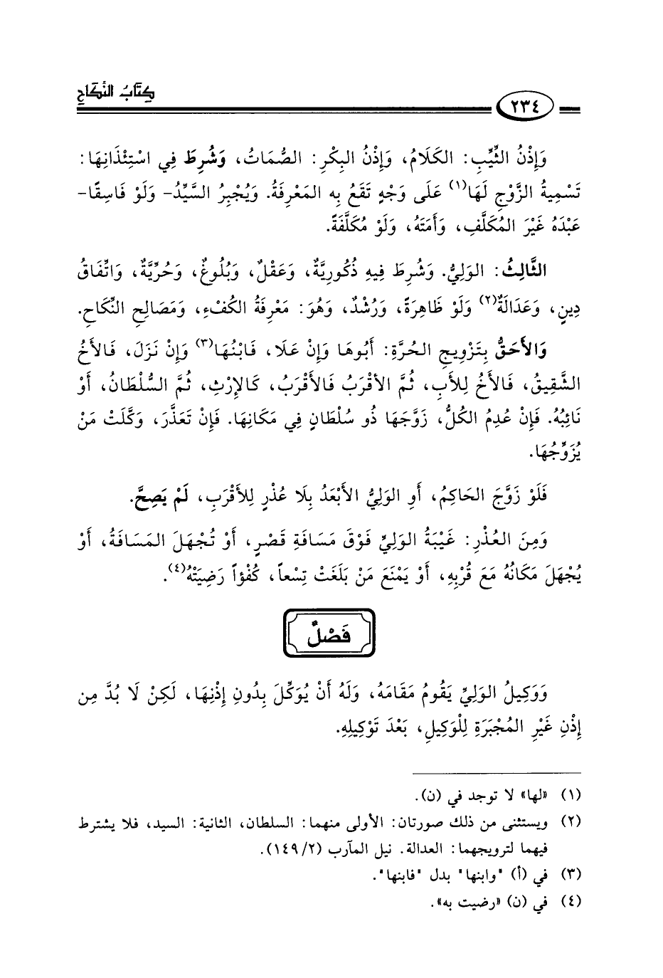 الثالث: الولي وشرط فيه ذكورية وعقل وبلوغ وحرية واتفاق دين وعدالة٢ ولو ظاهرة ورشد وهو معرفة الكفء ومصالح النكاح.