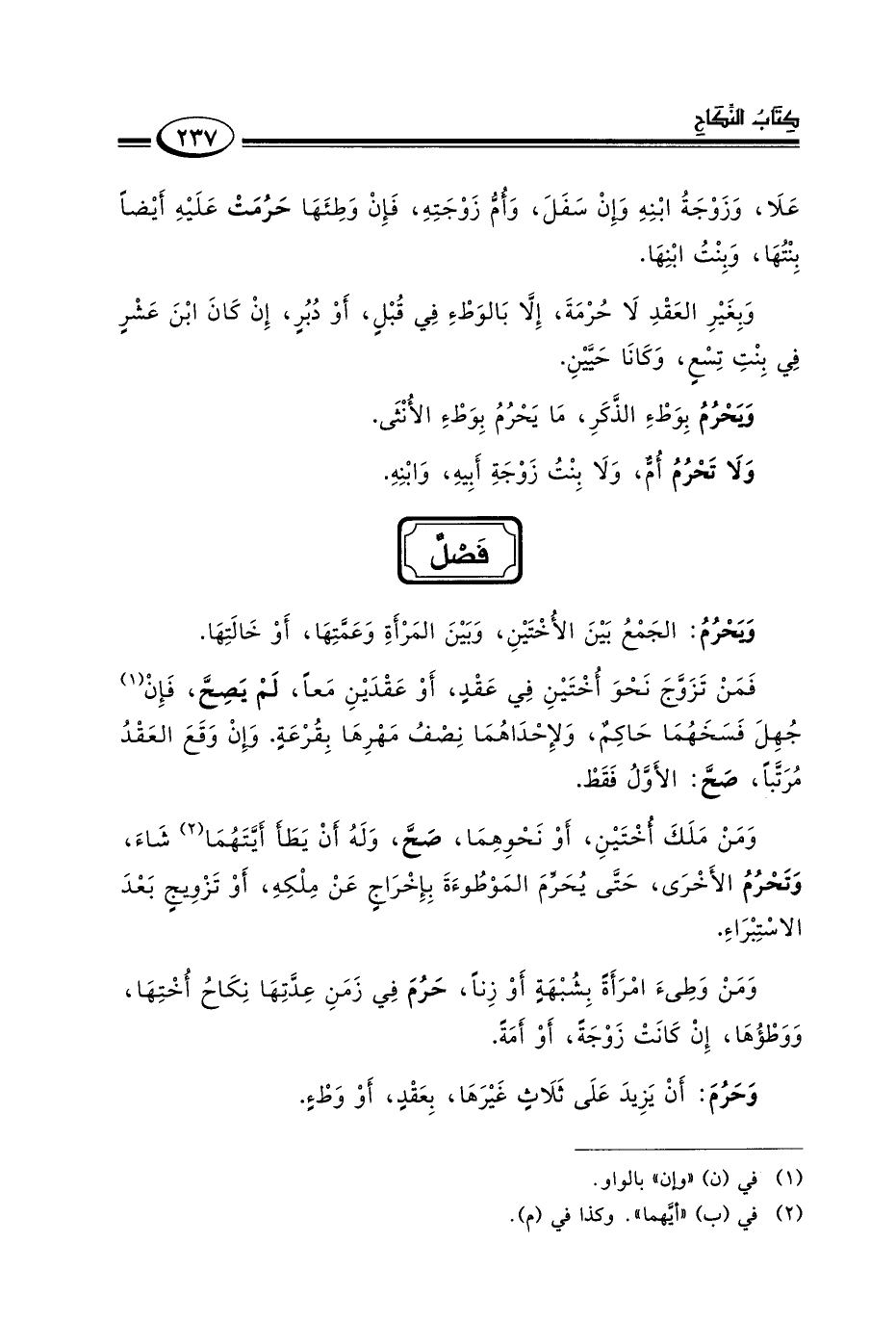 ويحرم الجمع بين الأختين وبين المرأة وعمتها أو خالتها.