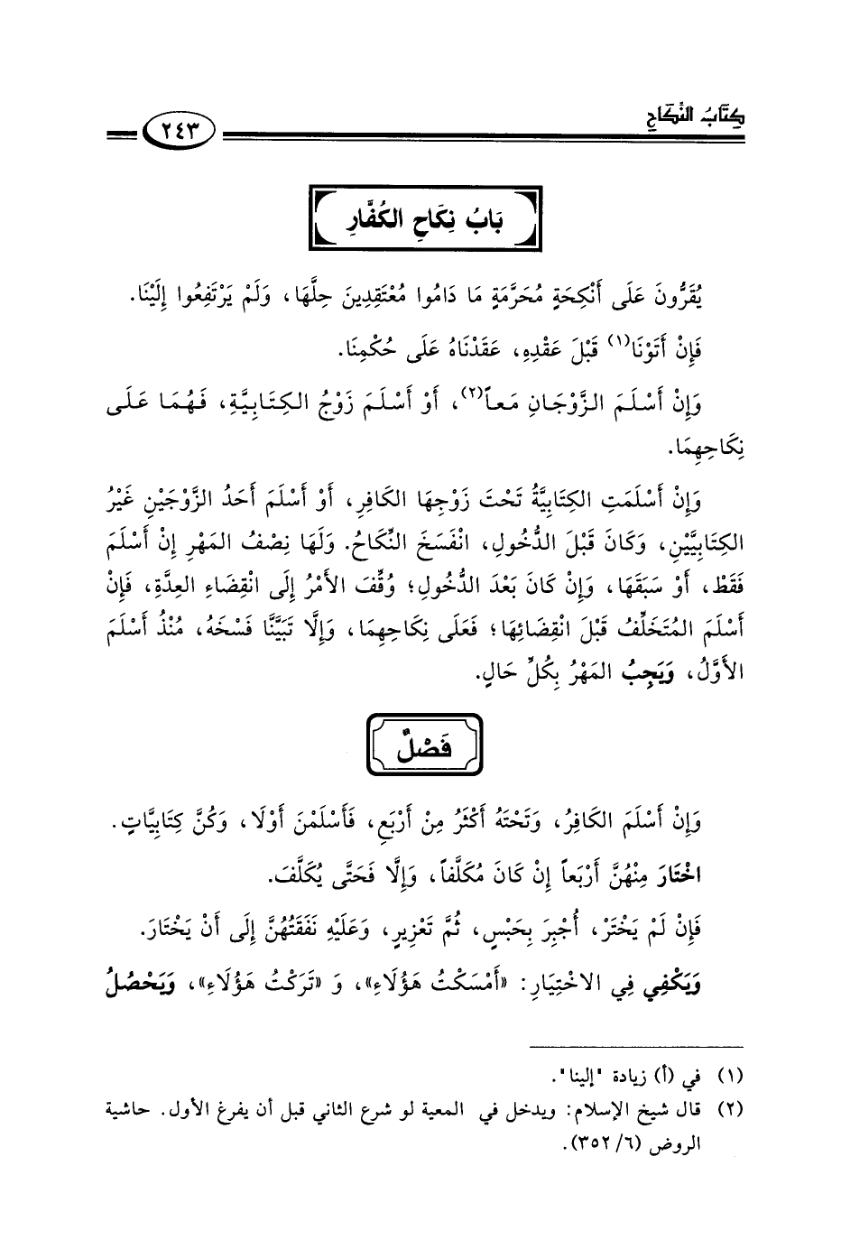 وإن أسلم الزوجان معا٢ أو أسلم زوج الكتابية فهما على نكاحهما.