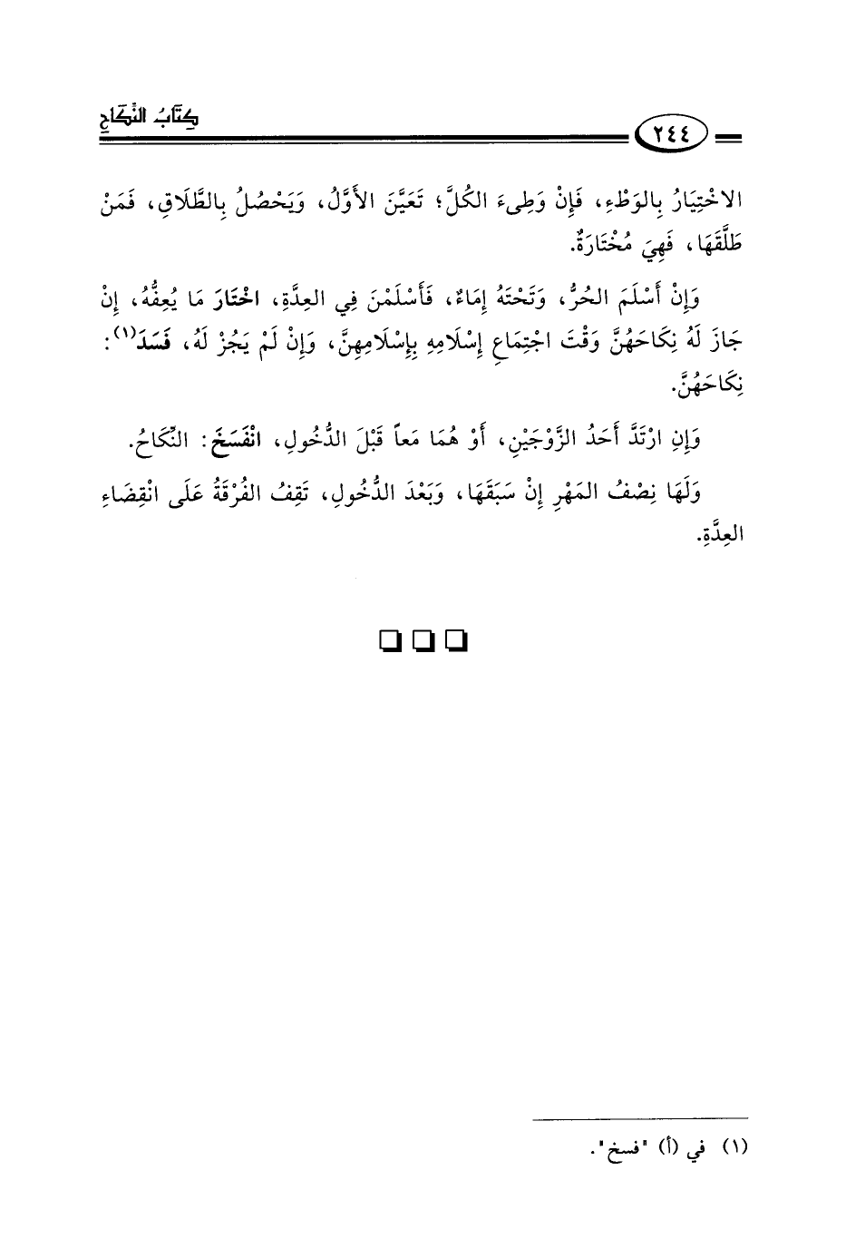 ١ في "أ" "فسخ".
