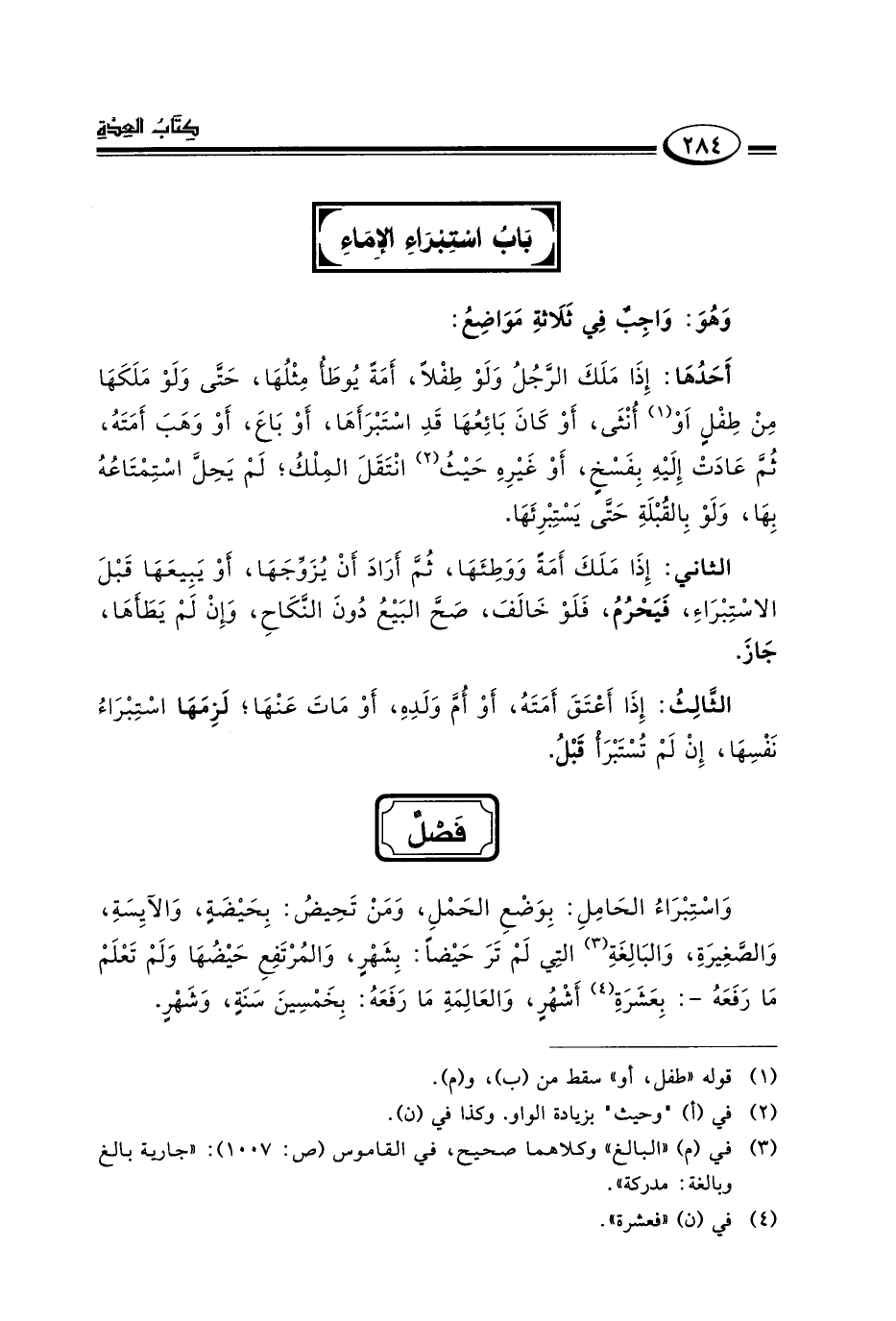 واستبراء الحامل: بوضع الحمل ومن تحيض: بحيضة والآيسة والصغيرة والبالغ٣ التي لم تر حيضا: بشهر والمرتفع حيضها ولم تدر ما رفعه: بعشرة٤ أشهر والعالمة مارفعه: بخمسين سنة وشهر.
