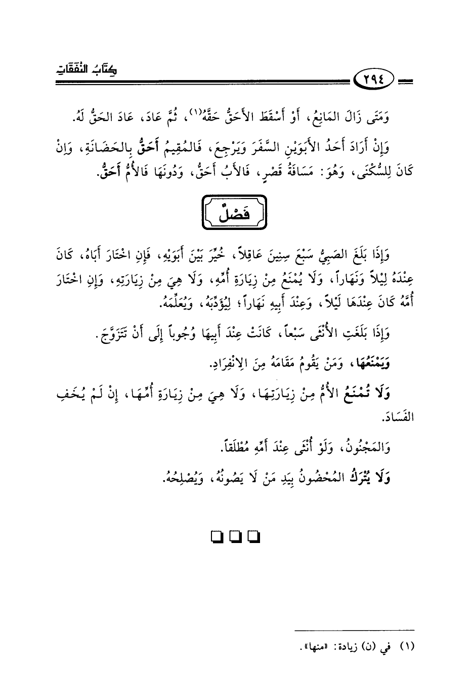ولا تمنع الأم من زيارتها ولا هي من زيارة أمها إن لم يخف الفساد.