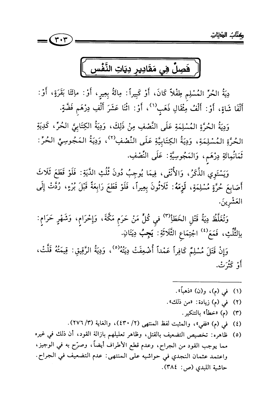 فصل في مقادير ديات النفس