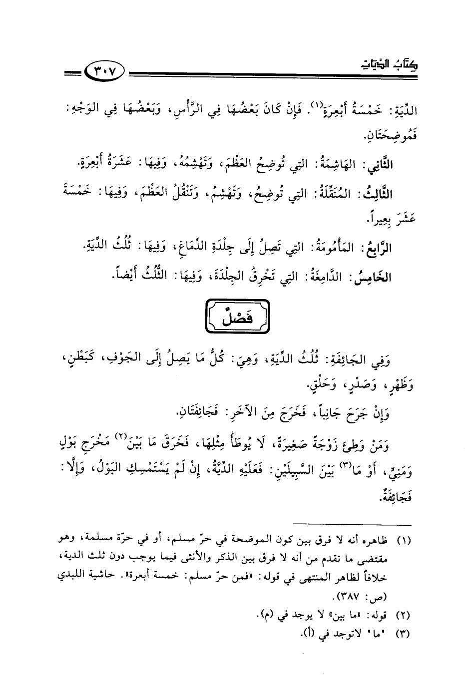 ١ ظاهره أنه لا فرق بين كون الموضحة في حر مسلم أو في حرة مسلمة وهو مقتضى ما تقدم من أنه لا فرق بين الذكر والأنثى فيما يوجب دون ثلث الدية خلافا لظاهر المنتهى في قوله: "فمن حر مسلم: خمسة أبعرة:. حاشية اللبدي "ص: ٣٨٧".
