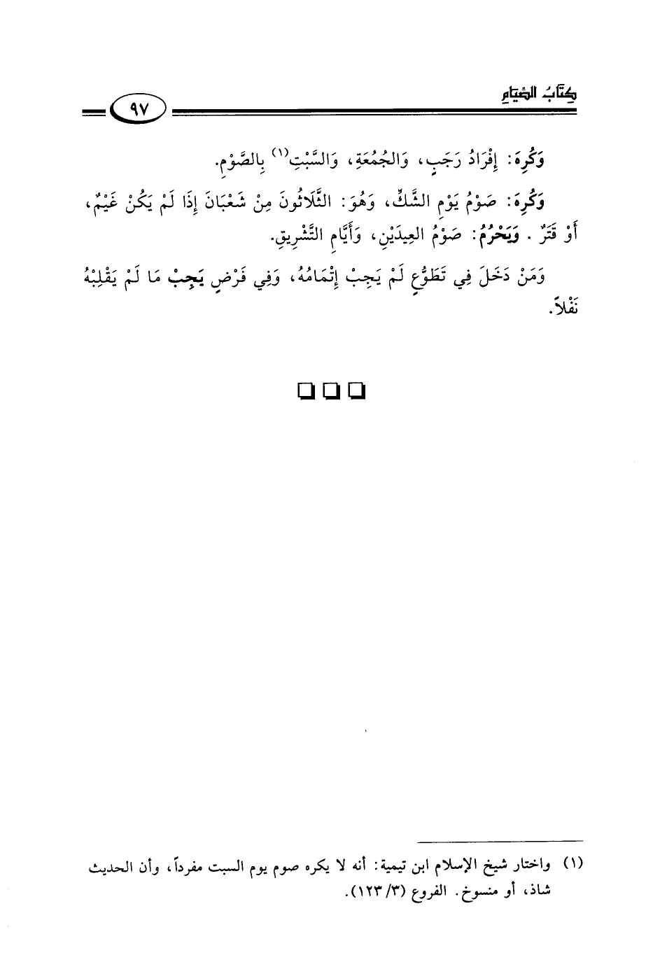 وكره إفراد رجب والجمعة والسبت١ بالصوم.