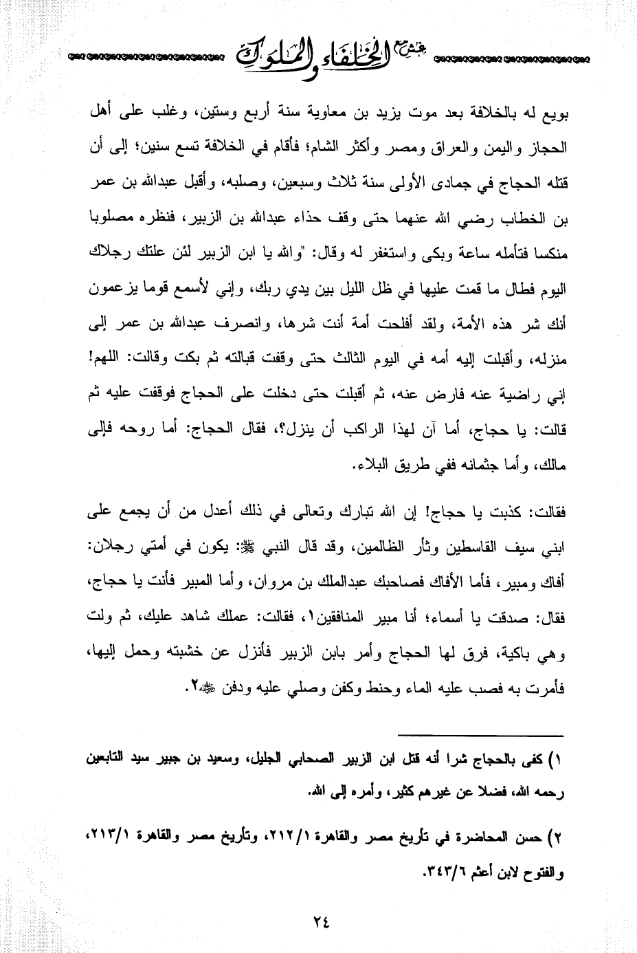 (¬2) حسن المحاضرة في تأريخ مصر والقاهرة 1/ 212، وتأريخ مصر والقاهرة 1/ 213، والفتوح لابن أعثم 6/ 343.