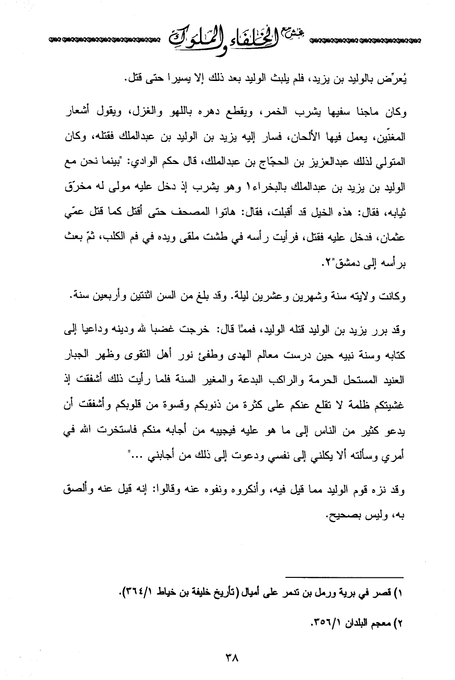 يُعرِّض بالوليد بن يزيد، فلم يلبث الوليد بعد ذلك إلا يسيرا حتى قتل.