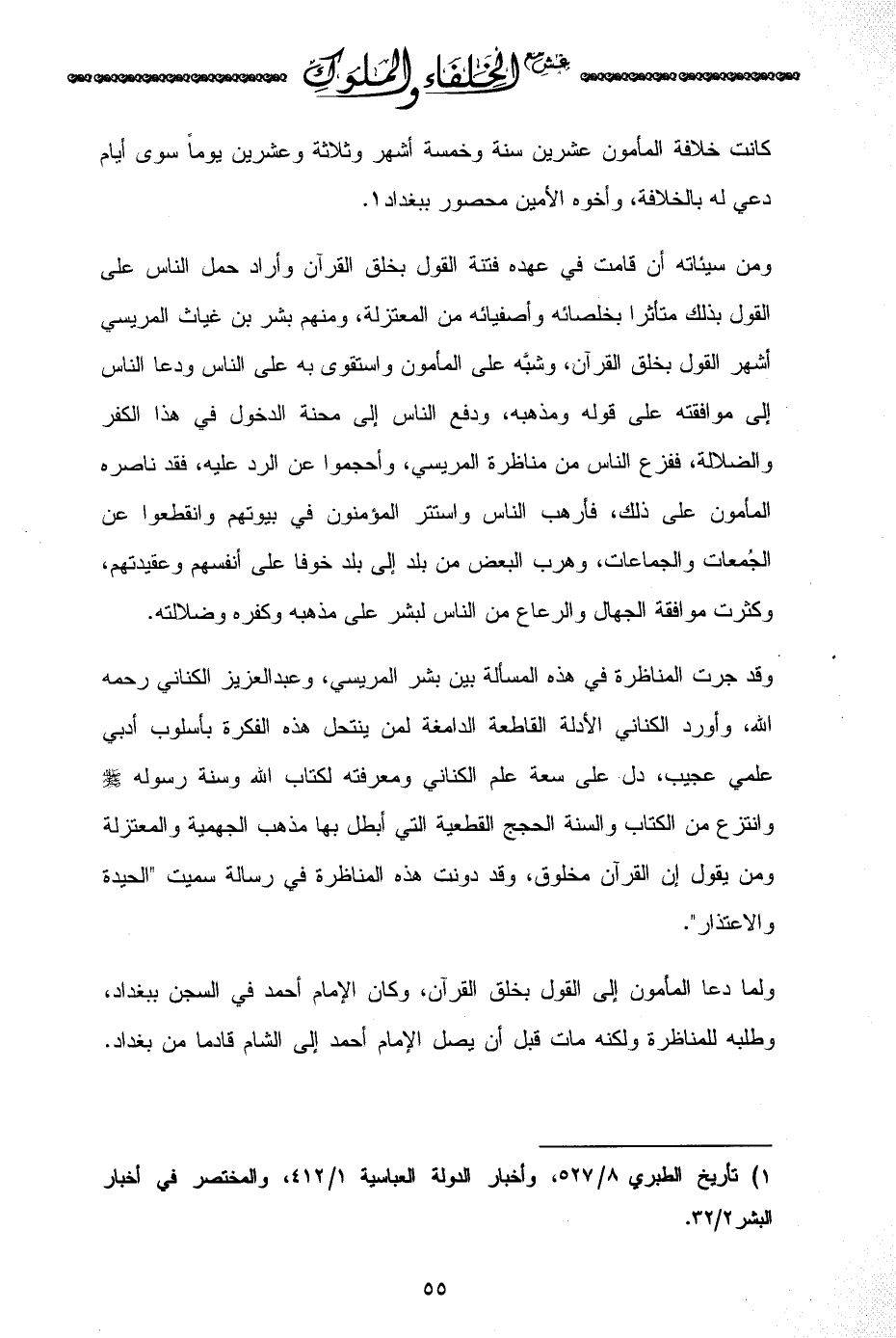 (¬1) تأريخ الطبري 8/ 527، وأخبار الدولة العباسية 1/ 412، والمختصر في أخبار البشر 2/ 32.