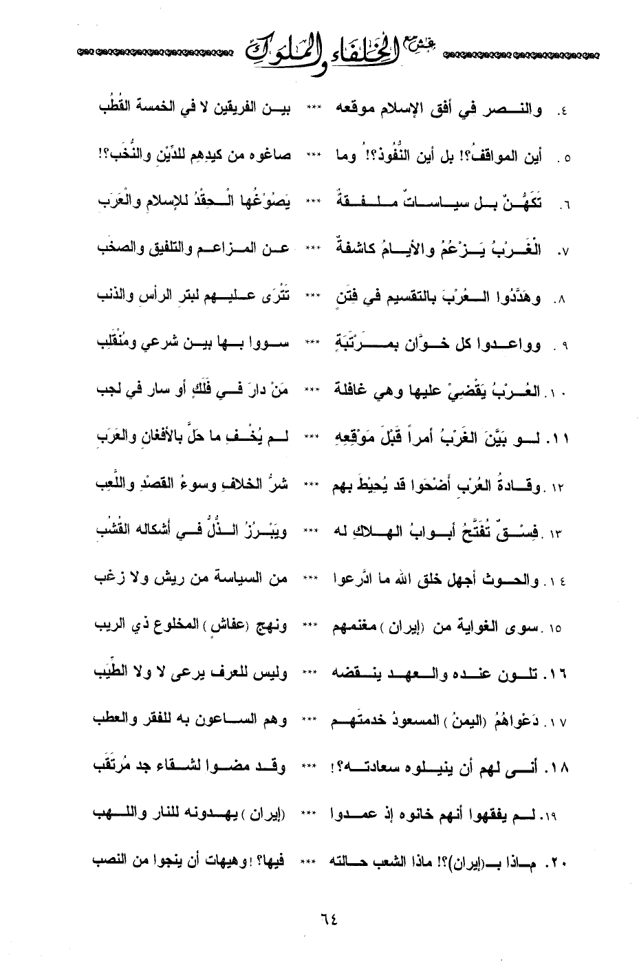 15. سوى الغواية من (إيران) مغنمهم ... ونهج (عفاشٍ) المخلوع ذي الريب