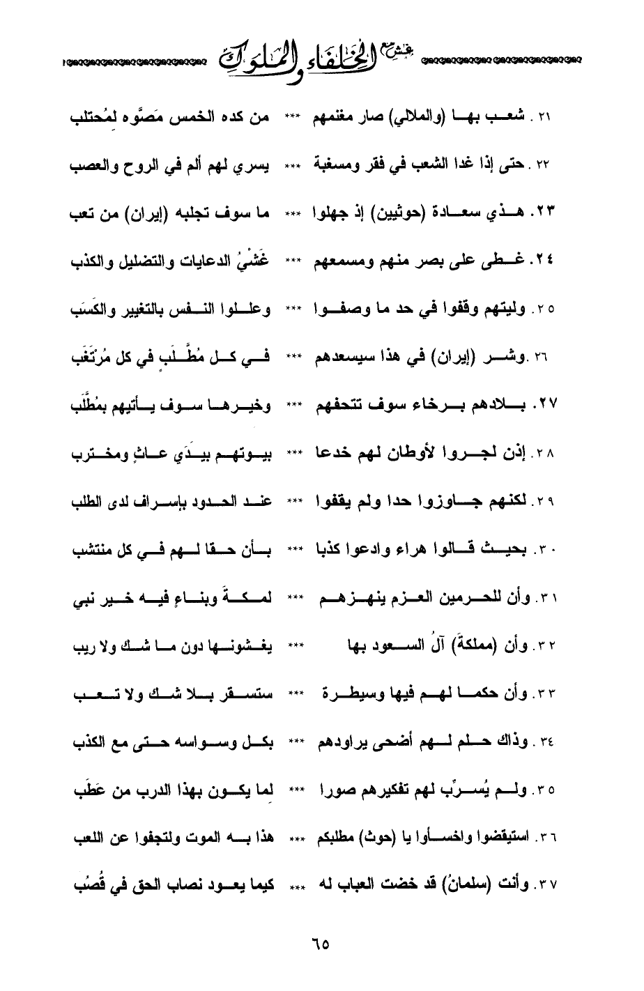 21. شعب بها (والملالي) صار مغنمهم ... من كده الخمس مَصَّوه لِمُحتلب