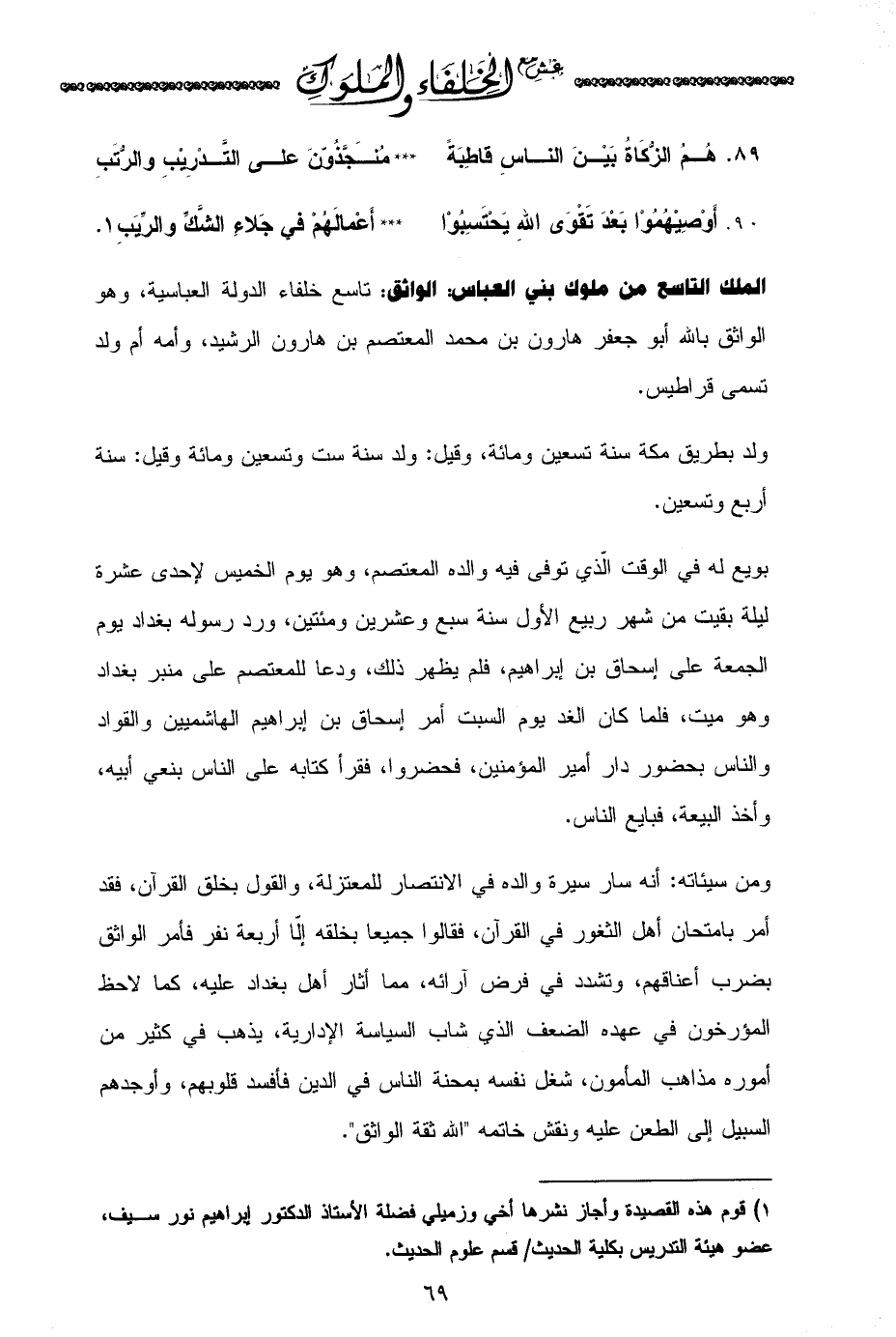 (¬1) قوم هذه القصيدة وأجاز نشرها أخي وزميلي فضلة الأستاذ الدكتور إبراهيم نور سيف، عضو هيئة التدريس بكلية الحديث/ قسم علوم الحديث.