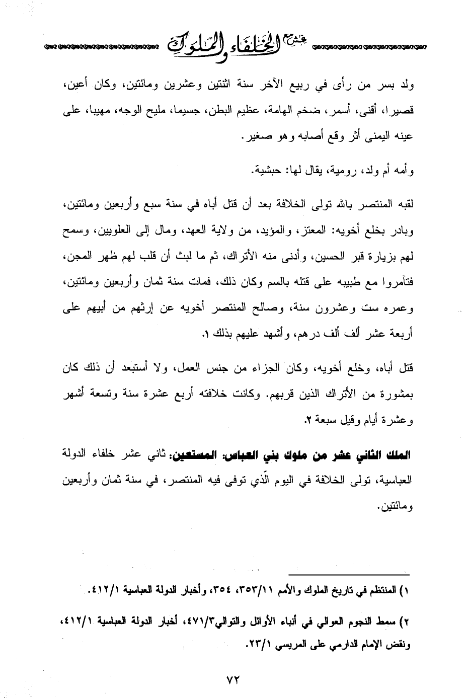 (¬2) سمط النجوم العوالي في أنباء الأوائل والتوالي 3/ 471، أخبار الدولة العباسية 1/ 412، ونقض الإمام الدارمي على المريسي 1/ 23.
