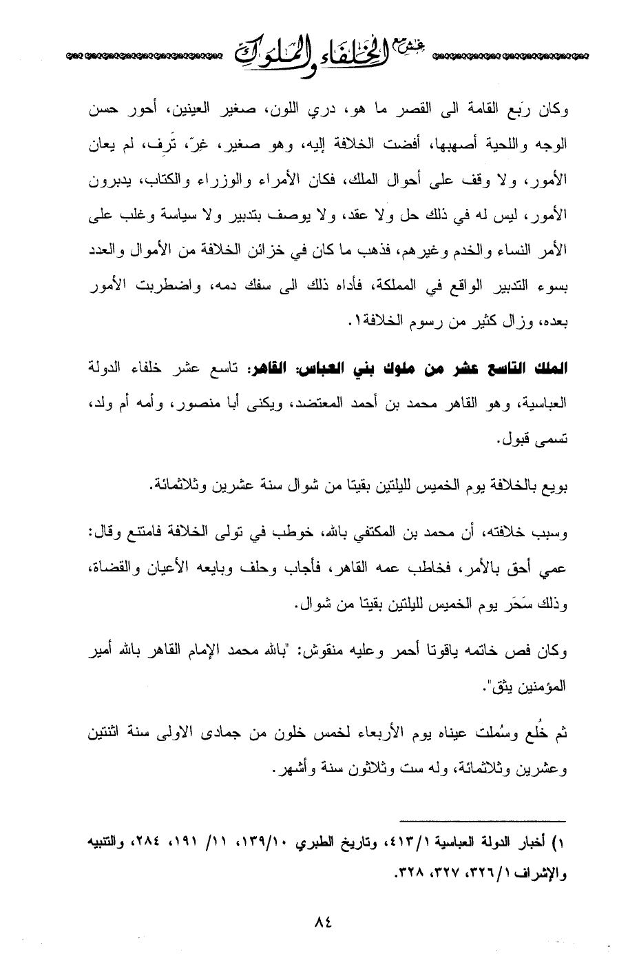 (¬1) أخبار الدولة العباسية 1/ 413، وتاريخ الطبري 10/ 139، 11/ 191، 284، والتنبيه والإشراف 1/ 326، 327، 328.