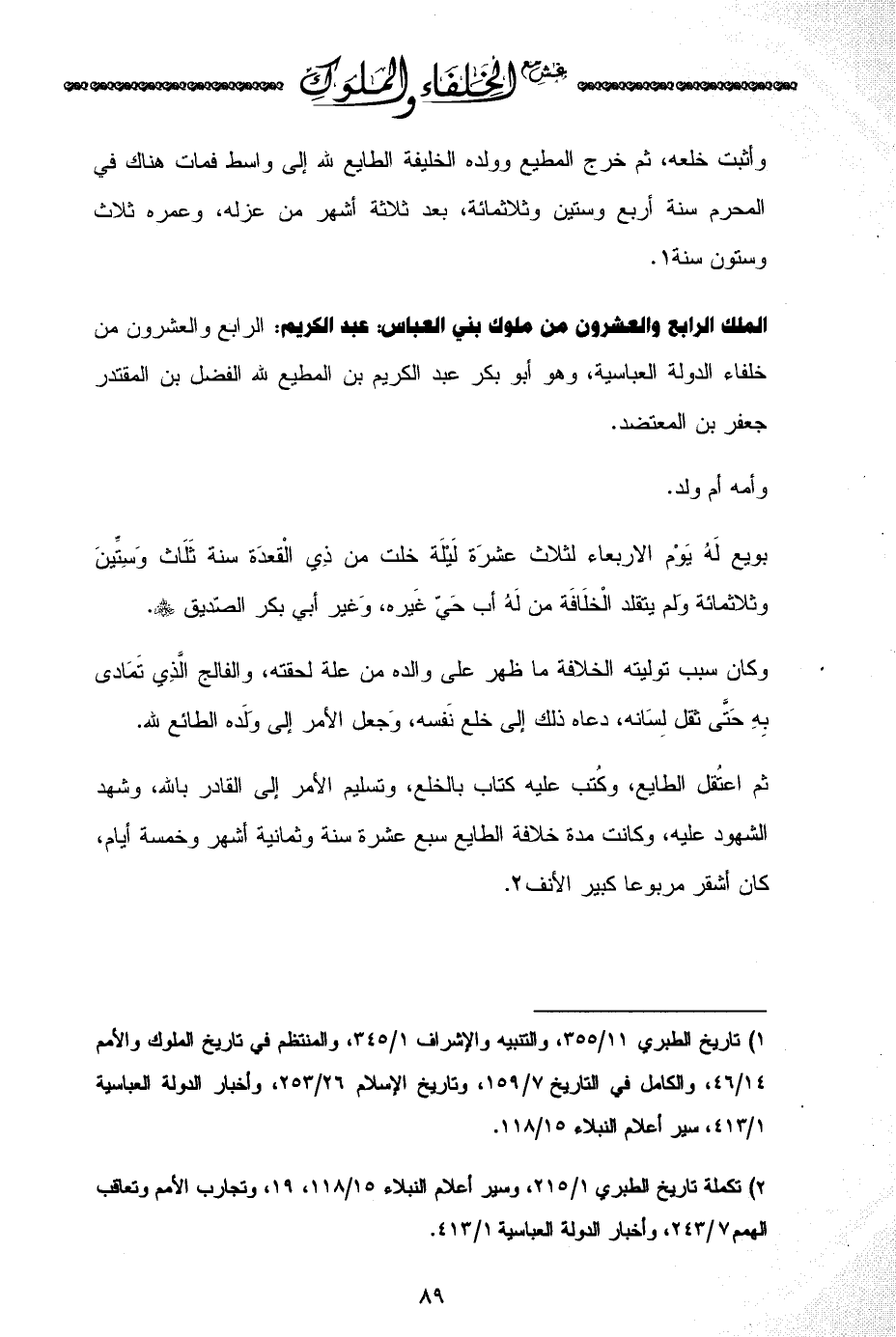 الملك الرابع والعشرون من ملوك بني العباس: عبد الكريم: الرابع والعشرون من خلفاء الدولة العباسية، وهو أبو بكر عبد الكريم بن المطيع لله الفضل بن المقتدر جعفر بن المعتضد.