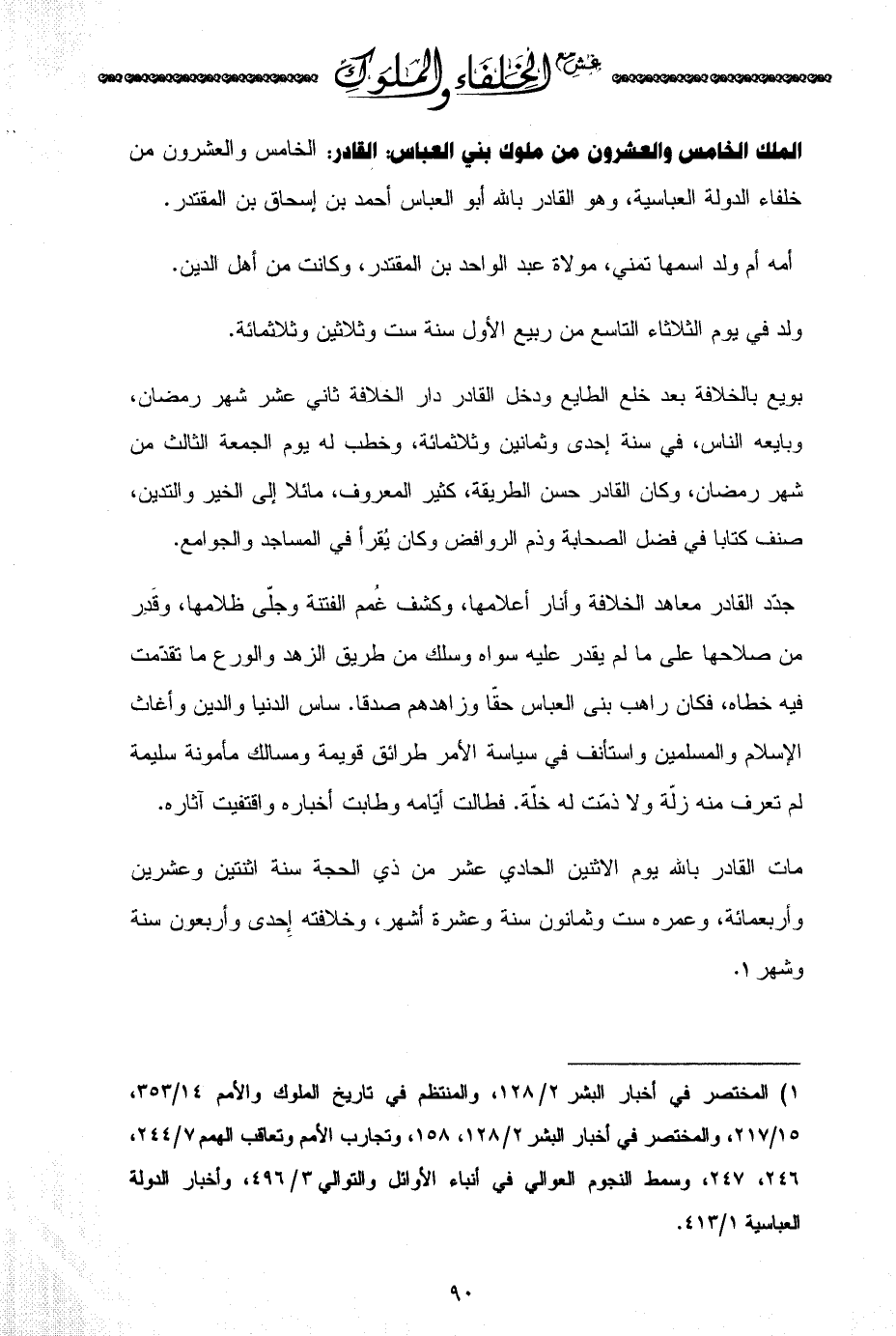 الملك الخامس والعشرون من ملوك بني العباس: القادر: الخامس والعشرون من خلفاء الدولة العباسية، وهو القادر بالله أبو العباس أحمد بن إسحاق بن المقتدر.