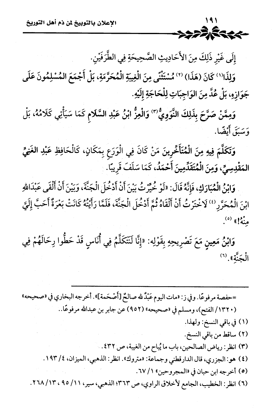 (¬٦) انظر: الخطيب، الجامع لأخلاق الراوي، ص ٣٦٣؛ الذهبي، سير، ١١/ ٩٥، ١٣/ ٢٦٨.