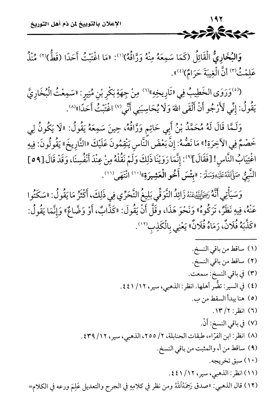 (¬١٢) قال الذهبي: "صدق رَحِمَهُ اللَّهُ ومن نظر في كلامِهِ في الجرح والتعديل عَلِمَ ورعه في الكلام =