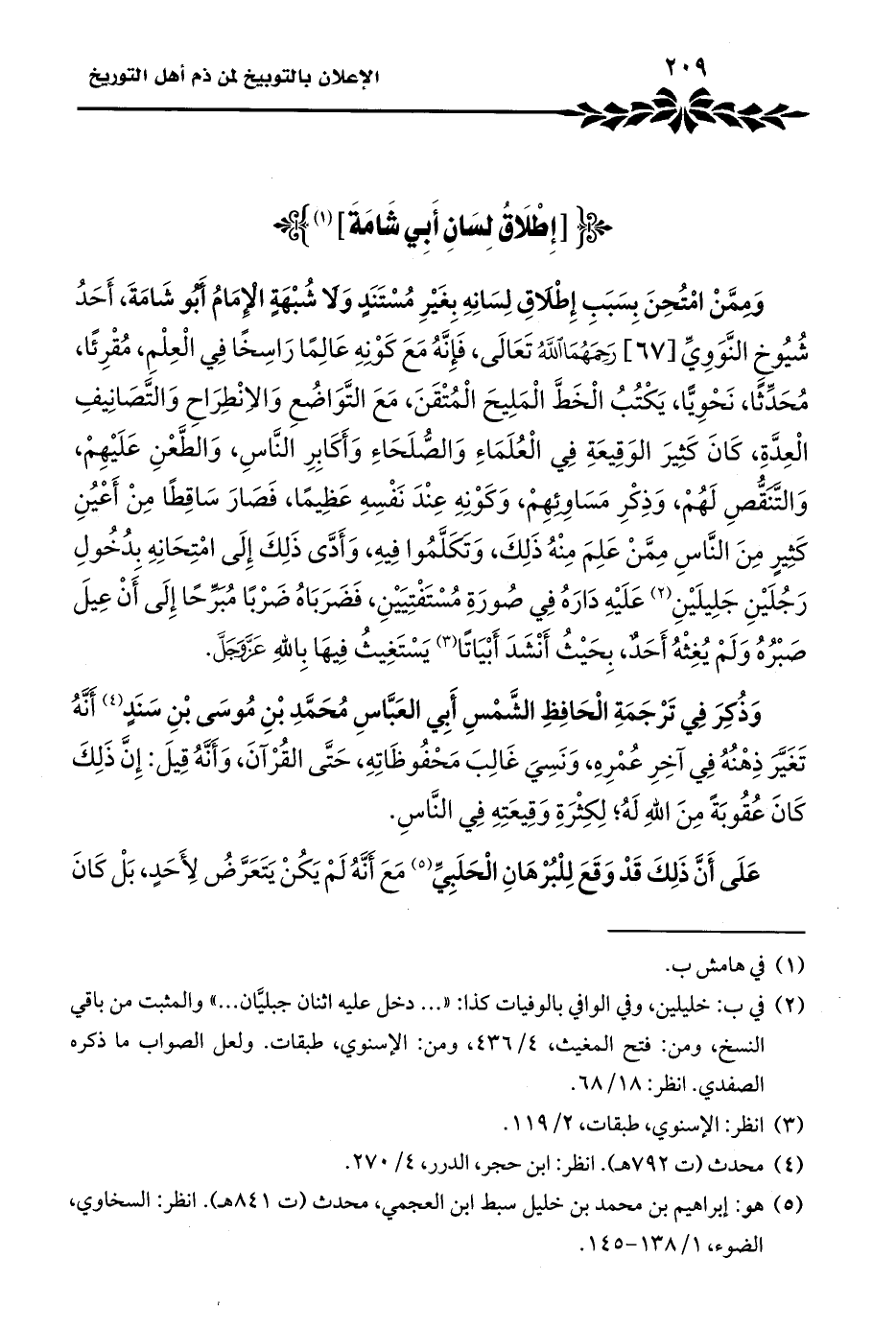 {إِطْلَاقُ لِسَانِ أَبِي شَامَةَ] (¬١)}