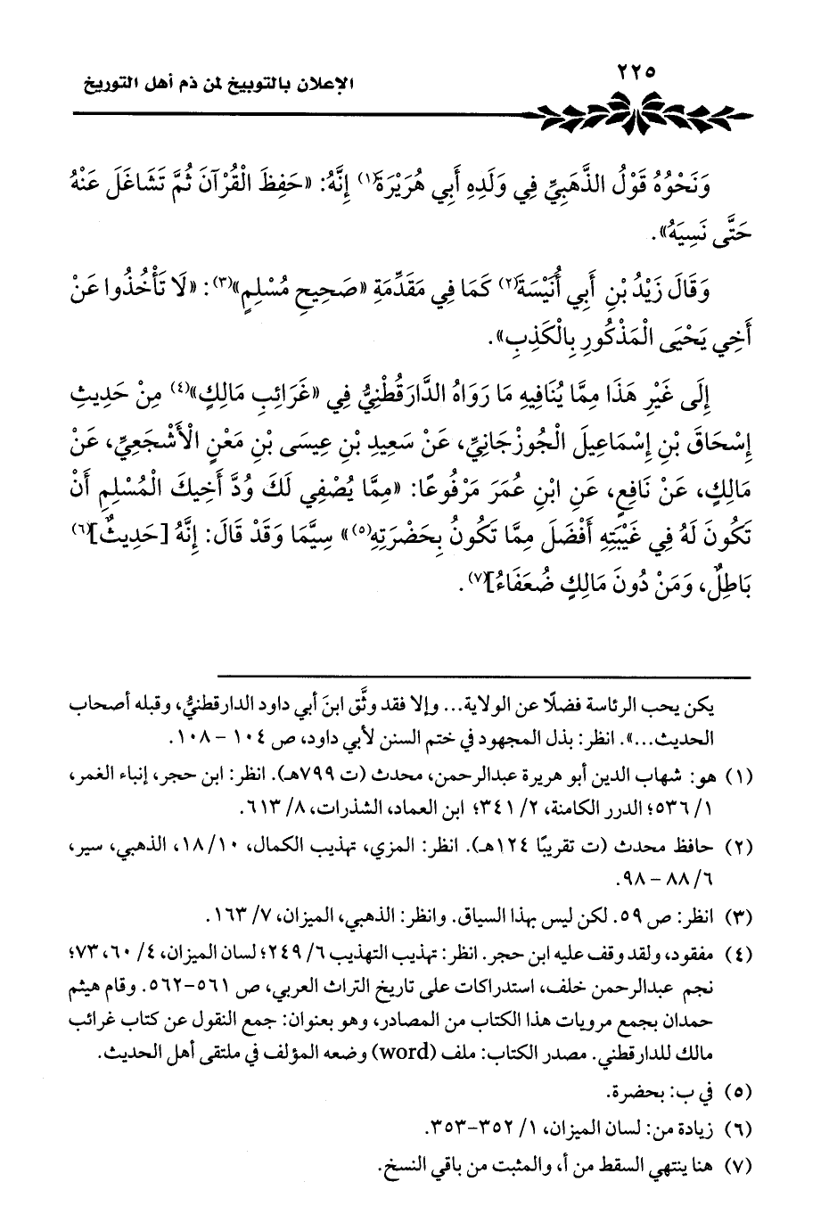 (¬٣) انظر: ص ٥٩. لكن ليس بهذا السياق. وانظر: الذهبي، الميزان، ٧/ ١٦٣.