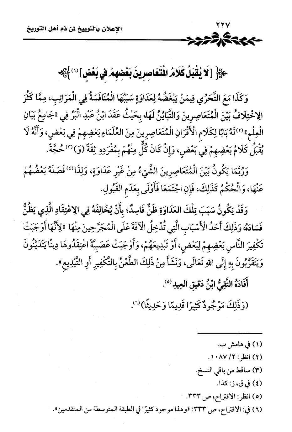 [لَا يُقْبَلُ كَلَامُ المُتَعَاصِرِينَ بَعْضِهِمْ فِي بَعْضٍ] (¬١)