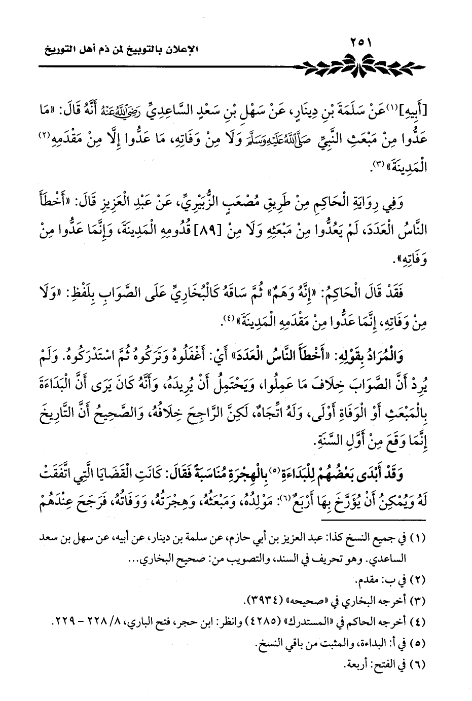[أَبِيهِ] (¬١) عَنْ سَلَمَةَ بْنِ دِينَارٍ، عَنْ سَهْلِ بْنِ سَعْدٍ السَّاعِدِيِّ -رضي الله عنه- أَنَّهُ قَالَ: "مَا عَدُّوا مِنْ مَبْعَثِ النَّبِيِّ -صلى الله عليه وسلم- وَلَا مِنْ وَفَاتِهِ، مَا عَدُّوا إِلَّا مِنْ مَقْدَمِهِ (¬٢) الْمَدِينَةَ" (¬٣).