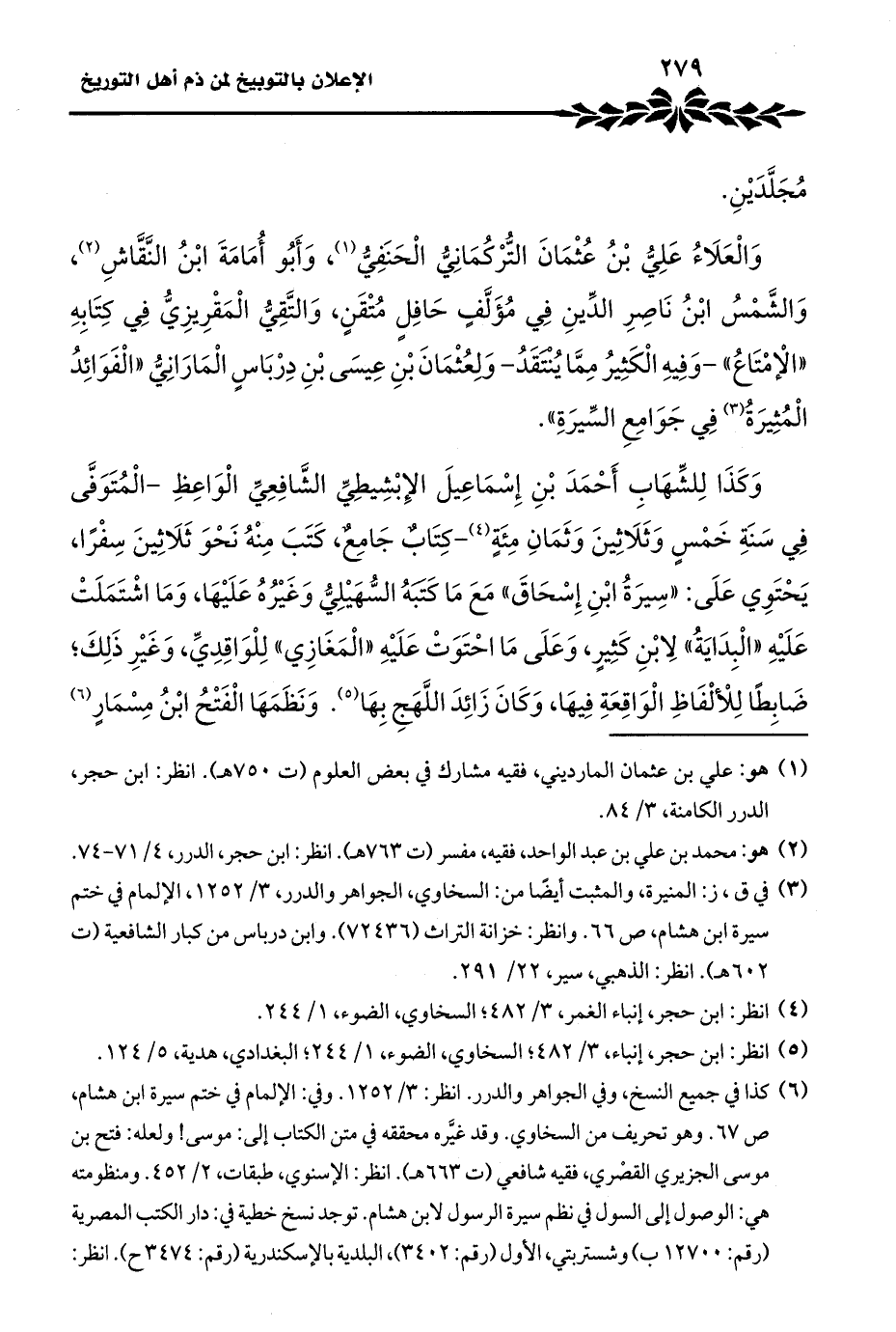 (¬٥) انظر: ابن حجر، إنباء، ٣/ ٤٨٢؛ السخاوي، الضوء، ١/ ٢٤٤؛ البغدادي، هدية، ٥/ ١٢٤.