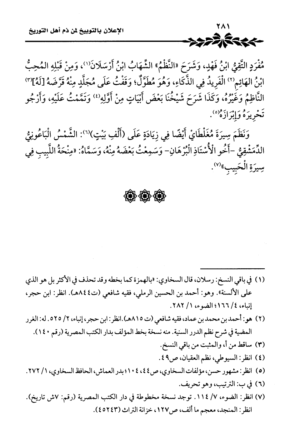 (¬٥) انظر: مشهور حسن، مؤلفات السخاوي، ص ٤٤، ١٠٤؛ بدر العماش، الحافظ السخاوي، ١/ ٢٧٢.