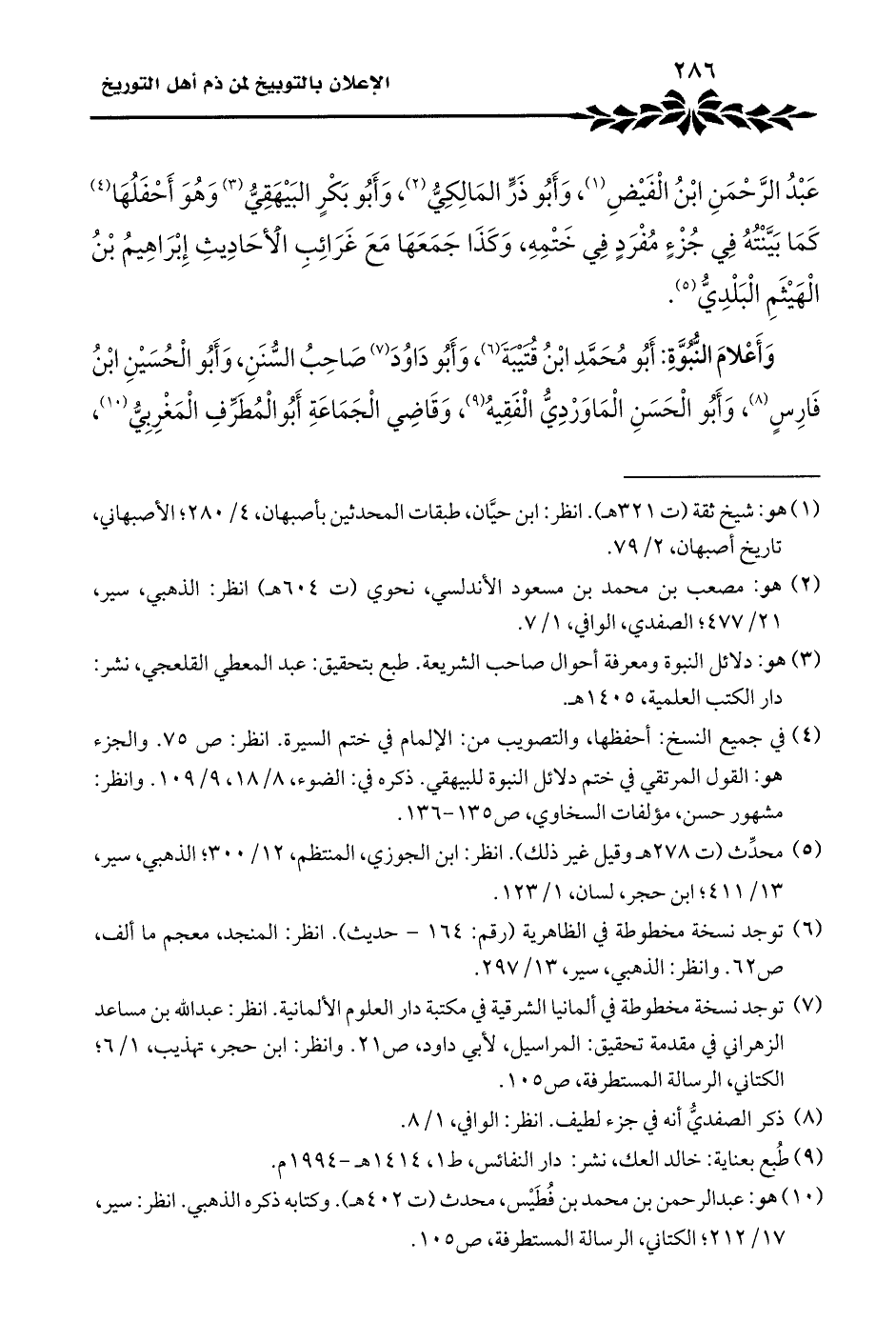 (¬١٠) هو: عبد الرحمن بن محمد بن فُطَيْس، محدث (ت ٤٠٢ هـ). وكتابه ذكره الذهبي. انظر: سير، ١٧/ ٢١٢؛ الكتاني، الرسالة المستطرفة، ص ١٠٥.