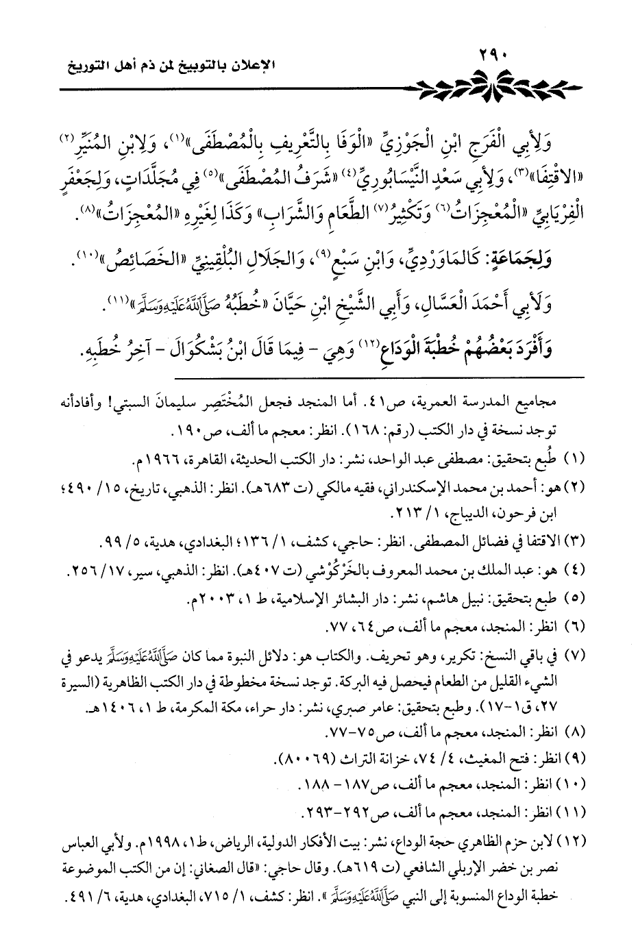وَلِأبِي الْفَرَجِ ابْنِ الْجَوْزِيِّ "الْوَفَا بِالتَّعْرِيفِ بِالْمُصْطَفَى" (¬١)، وَلِابْنِ المُنيِّرِ (¬٢) "الاقْتِفَا" (¬٣)، وَلِأبِي سَعْدٍ النَّيْسَابُورِيِّ (¬٤) "شَرَفُ المُصْطَفَى" (¬٥) فِي مُجَلَّدَاتٍ، وَلِجَعْفَرٍ الْفِرْيَابِيِّ "الْمُعْجِزَاتُ (¬٦) وَتَكْثِيرُ (¬٧) الطَّعَامِ وَالشَّرَابِ" وَكَذَا لِغَيْرِهِ "المُعْجِزَاتُ" (¬٨).