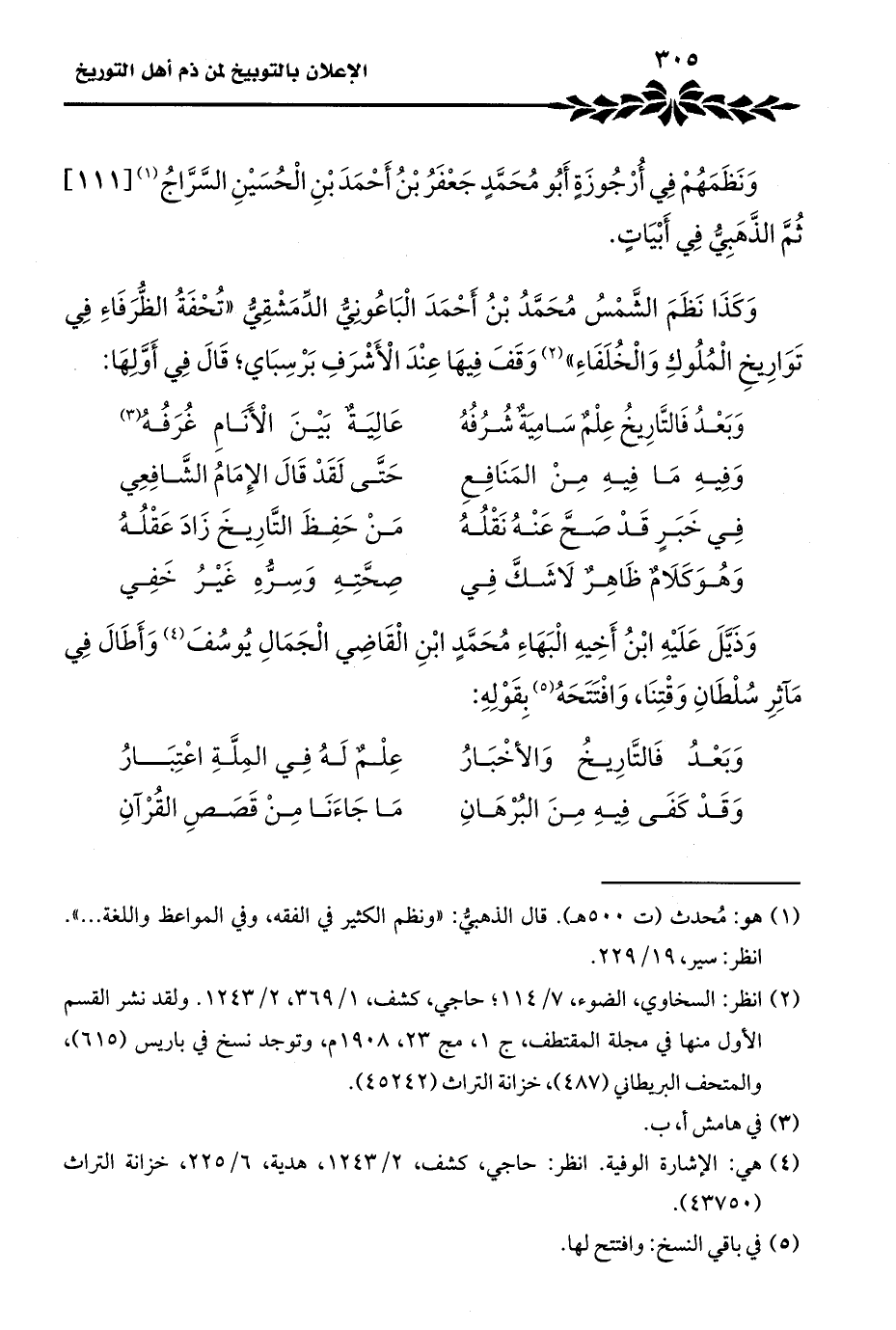 وَبَعْدُ فَالتَّارِيخُ عِلْمٌ سَامِيَةٌ شُرُفُهُ ... عَالِيَةٌ بَيْنَ الْأَنَامِ غُرَفُهُ (¬٣)