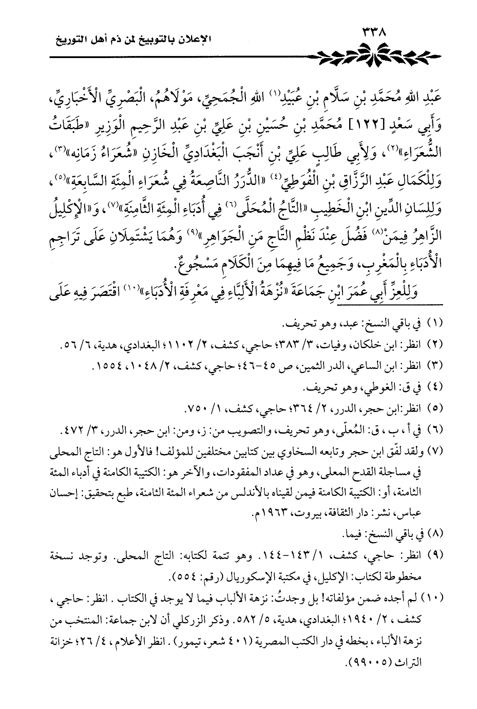 كتاب الإعلان بالتوبيخ لمن ذم أهل التوريخ ت الظفيري