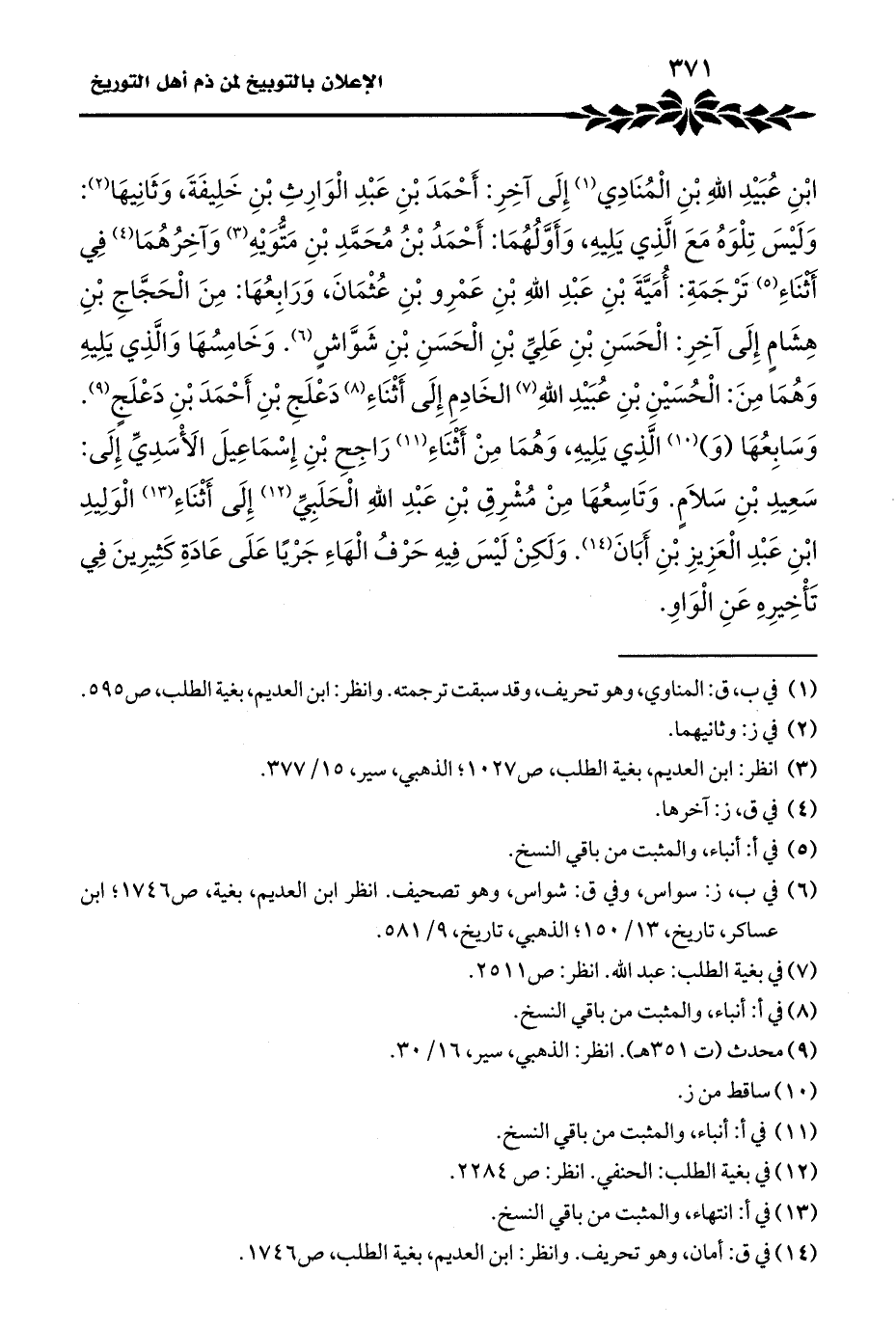 (¬٣) انظر: ابن العديم، بغية الطلب، ص ١٠٢٧؛ الذهبي، سير، ١٥/ ٣٧٧.