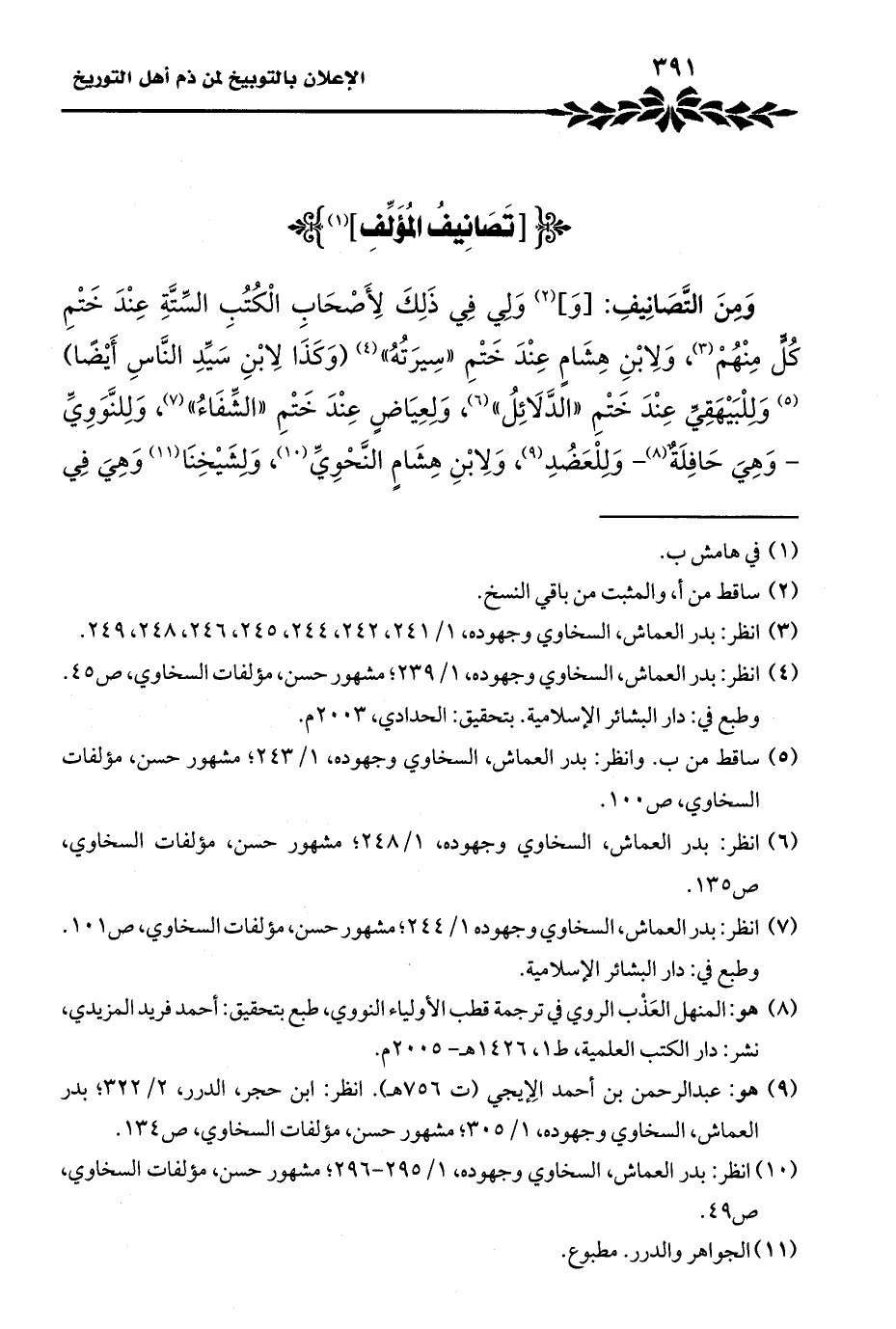 (¬١٠) انظر: بدر العماش، السخاوي وجهوده، ١/ ٢٩٥ - ٢٩٦؛ مشهور حسن، مؤلفات السخاوي، ص ٤٩.