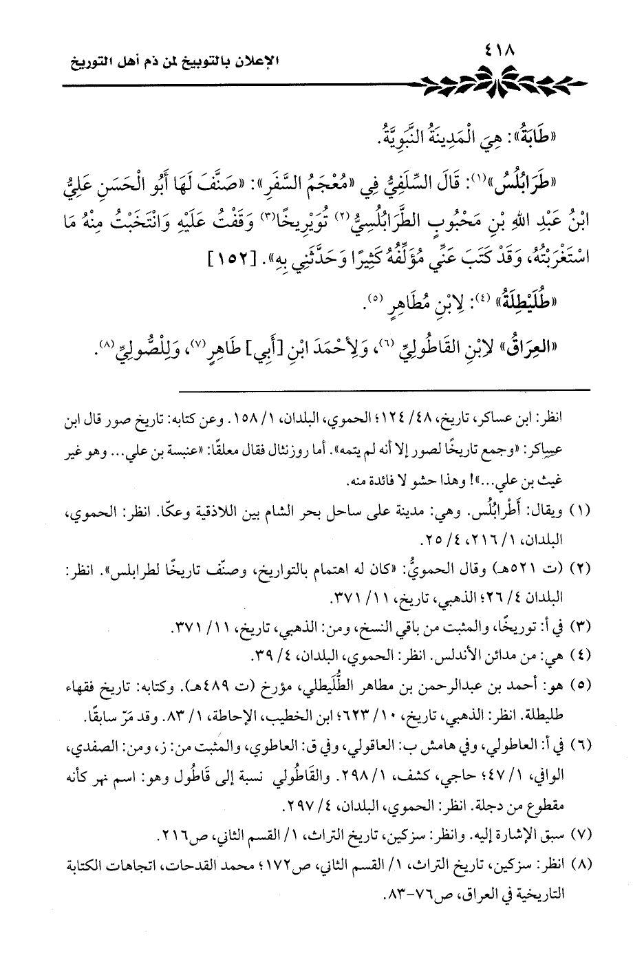 (¬٨) انظر: سزكين، تاريخ التراث، ١/ القسم الثاني، ص ١٧٢؛ محمد القدحات، اتجاهات الكتابة التاريخية في العراق، ص ٧٦ - ٨٣.