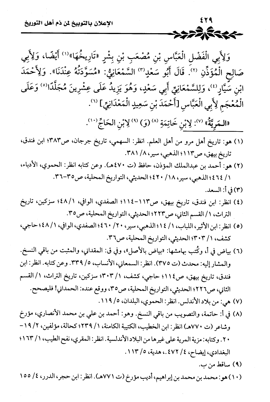 (¬٥) انظر: ابن الأثير، اللباب، ١/ ١٤؛ الذهبي، سير، ٢٠/ ٤٦٠؛ الصفدي، الوافي، ١/ ٤٨؛ حاجي، كشف، ١/ ٣٠٣؛ الحديثي، التواريخ المحلية، ص ٣٦.