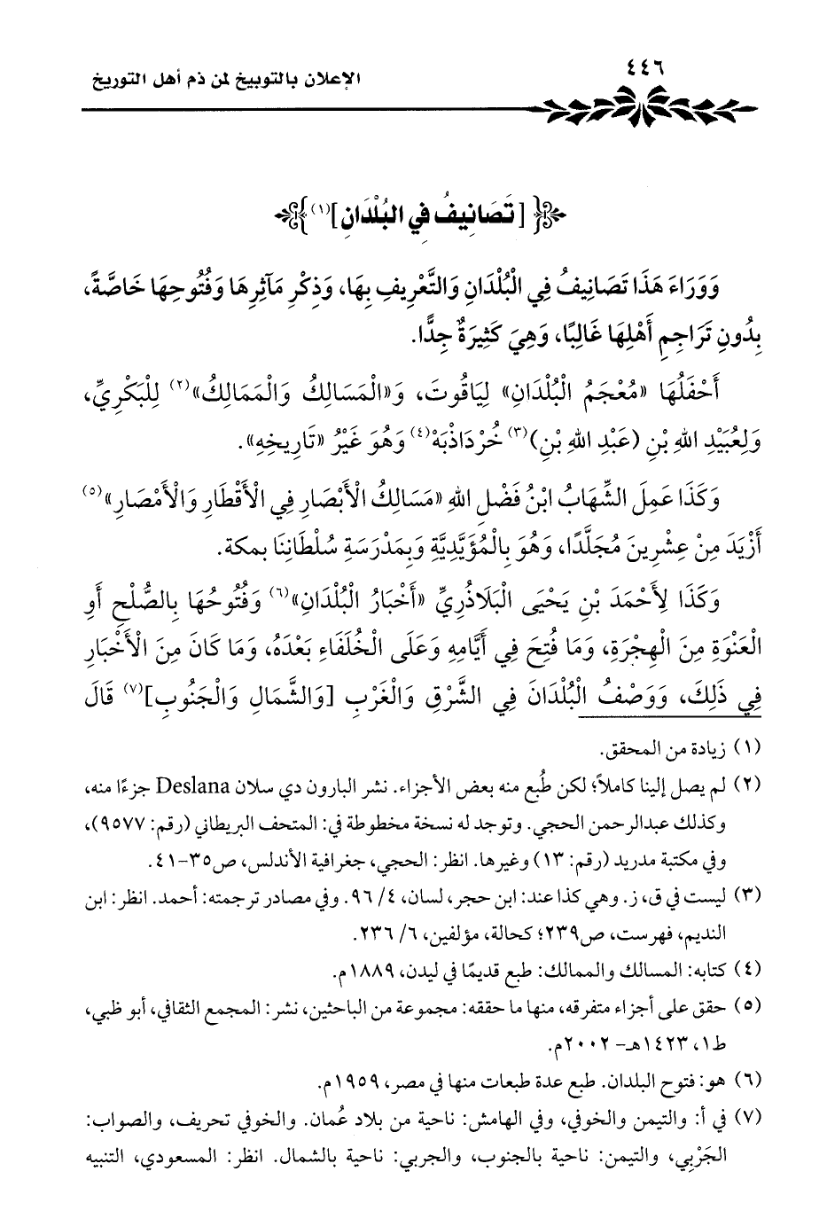 وَوَرَاءَ هَذَا تَصَانِيفُ فِي الْبُلْدَانِ وَالتَّعْرِيفِ بِهَا، وَذِكْرِ مَآثِرِهَا وَفُتُوحِهَا خَاصَّةً، بِدُونِ تَرَاجِمِ أَهْلِهَا غَالِبًا، وَهِيَ كَثِيرَةٌ جِدًّا.