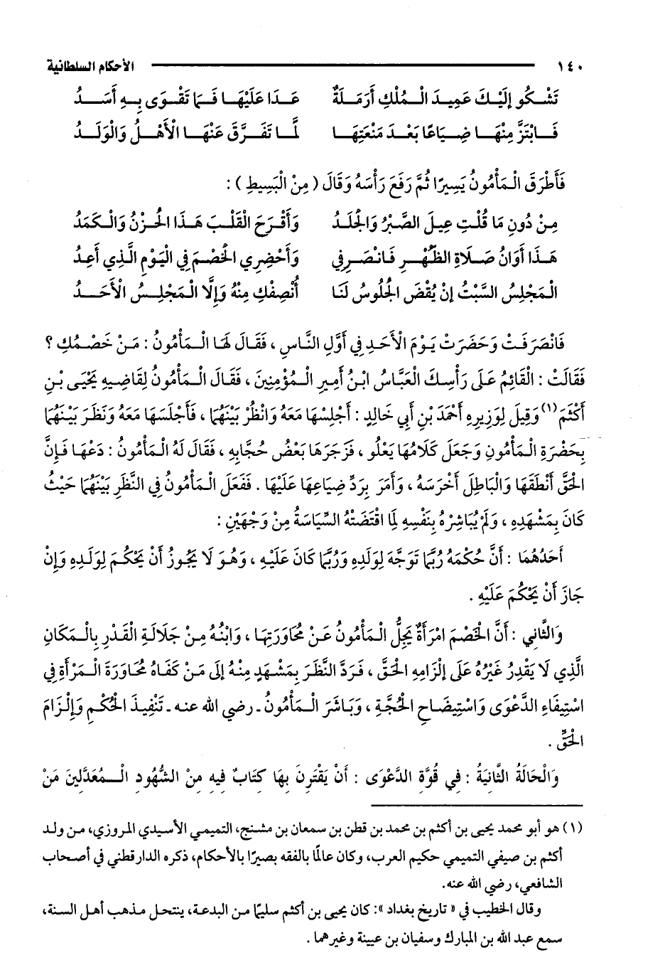 1 هو أبو محمد يحيى بن أكثم بن محمد بن قطن بن سمعان بن مشنج، التميمي الأسيدي المروزي، من ولد أكثم بن صيفي التميمي حكيم العرب، وعالمًا بالفقه بصيرًا بالأحكام، ذكره الدارقطني في أصحاب الشافعي -رضي الله عنه.