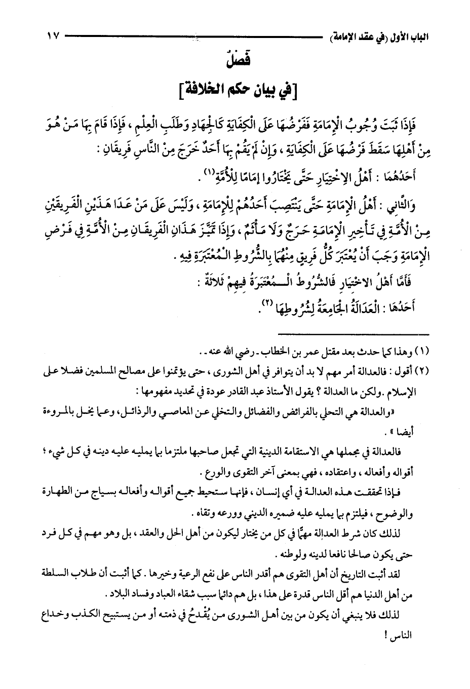 فَصْلٌ: "فِي بَيَانِ حُكْمِ الخِلَافَةِ"