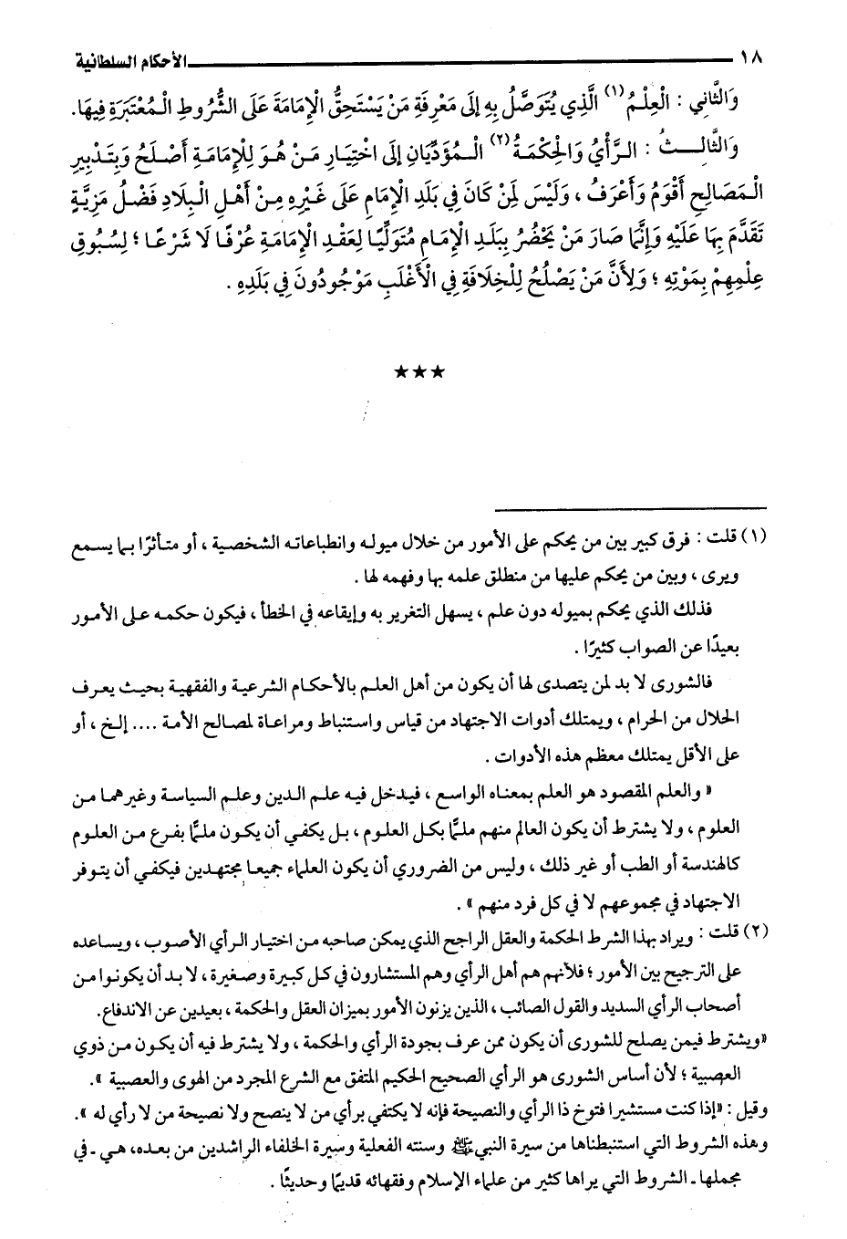 2 قلت: ويراد بهذا الشرط الحكمة والعقل الراجح الذي يمكِّنُ صاحبه من اختيار الرأي الأصوب، ويساعده على الترجيح بين الأمور؛ فلأنهم هم أهل الرأي وهم المستشارون في كل كبيرة وصغيرة، لا بُدَّ أن يكونوا من أصحاب الرأي السديد والقول الصائب، الذين يزنون الأمور بميزان العقل والحكمة، بعيدين عن الاندفاع.