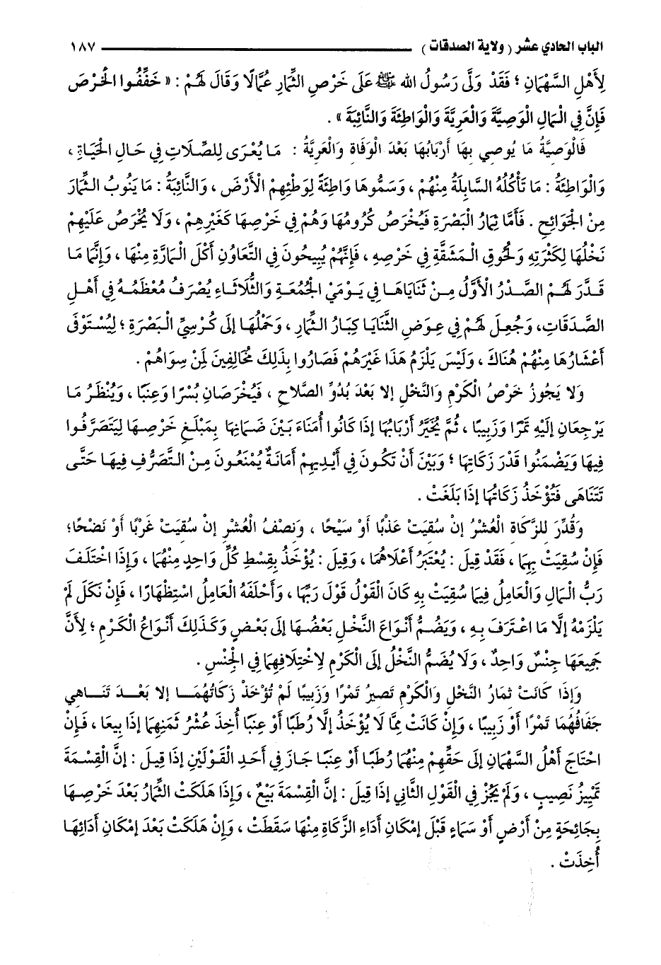 لِأَهْلِ السَّهْمَانِ؛ فَقَدْ وَلَّى رَسُولُ اللَّهِ -صَلَّى اللَّهُ عَلَيْهِ وَسَلَّمَ- عَلَى خَرْصِ الثِّمَارِ عُمَّالًا وَقَالَ لَهُمْ: "خَفِّفُوا الْخَرْصَ فَإِنَّ فِي الْمَالِ الْوَصِيَّةَ وَالْعَرِيَّةَ وَالْوَاطِئَةَ وَالنَّائِبَةَ".