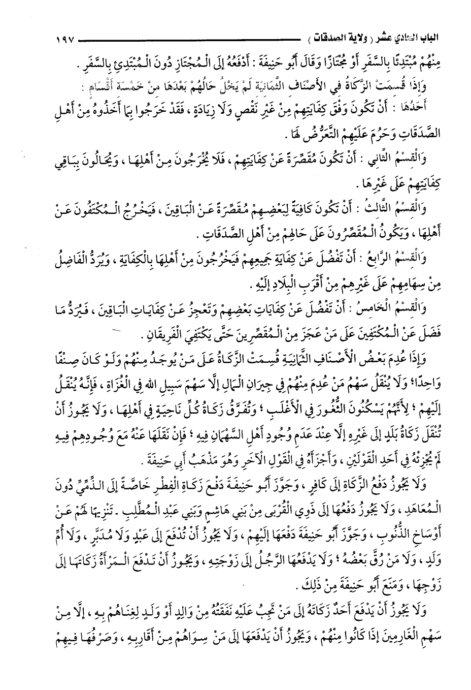 وَالْقِسْمُ الثَّالِثُ: أَنْ تَكُونَ كَافِيَةً لِبَعْضِهِمْ مُقَصِّرَةً عَنِ الْبَاقِينَ، فَيَخْرُجُ الْمُكْتَفُونَ عَنْ أَهْلِهَا، وَيَكُونُ الْمُقَصِّرُونَ عَلَى حَالِهِمْ مِنْ أَهْلِ الصَّدَقَاتِ.