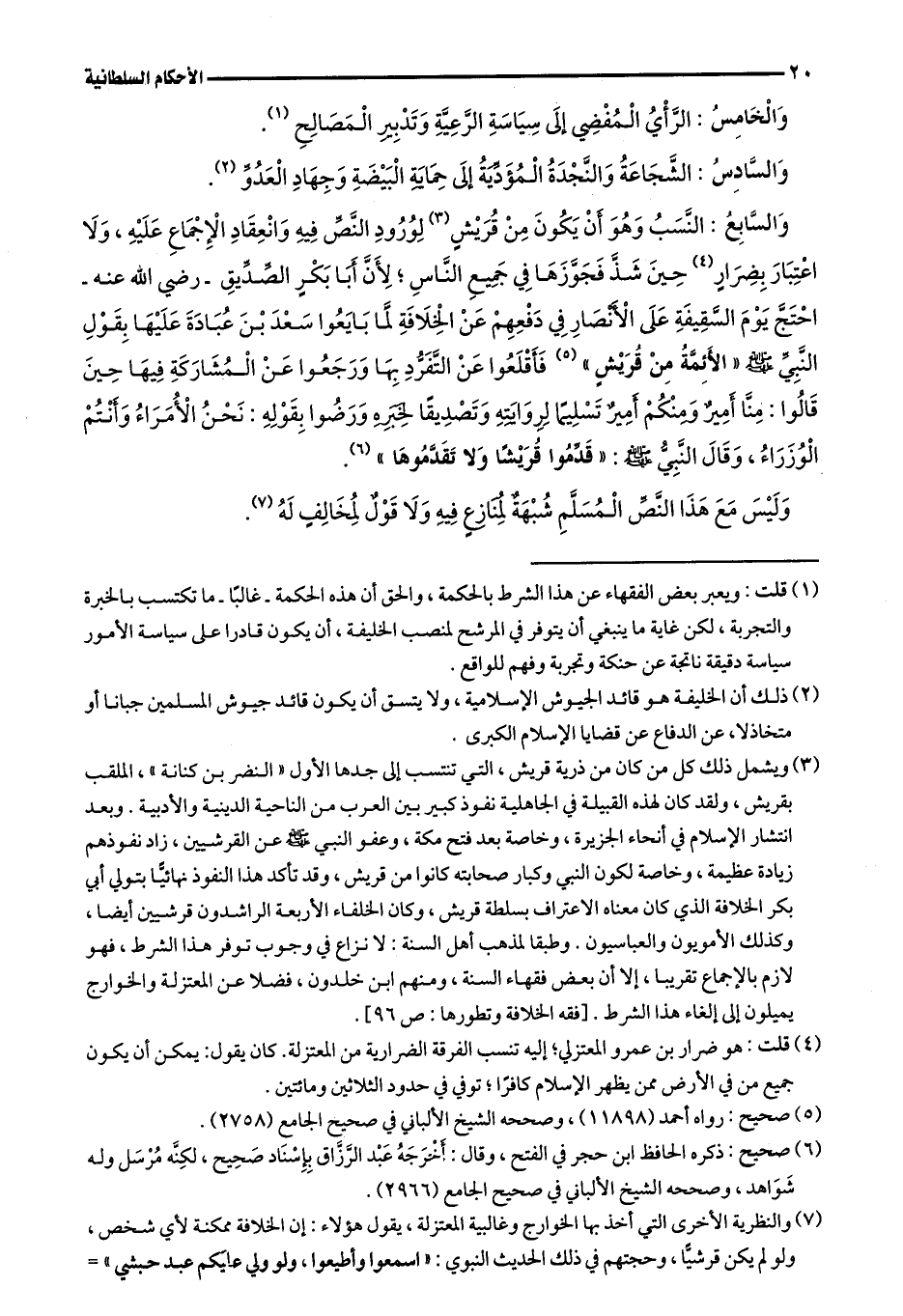 1 قلت: ويعبِّر بعض الفقهاء عن هذا الشرط بالحكمة، والحق أنَّ هذه الحكمة غالبًا ما تُكْتَسَب بالخبرة والتجربة، لكن غاية ما ينبغي أن يتوفَّر في المرشَّحِ لمنصب الخليفة أن يكون قادرًا على سياسة الأمور سياسةً دقيقة ناتجة عن حِنْكَة وتجربة وفهمٍ للواقع.