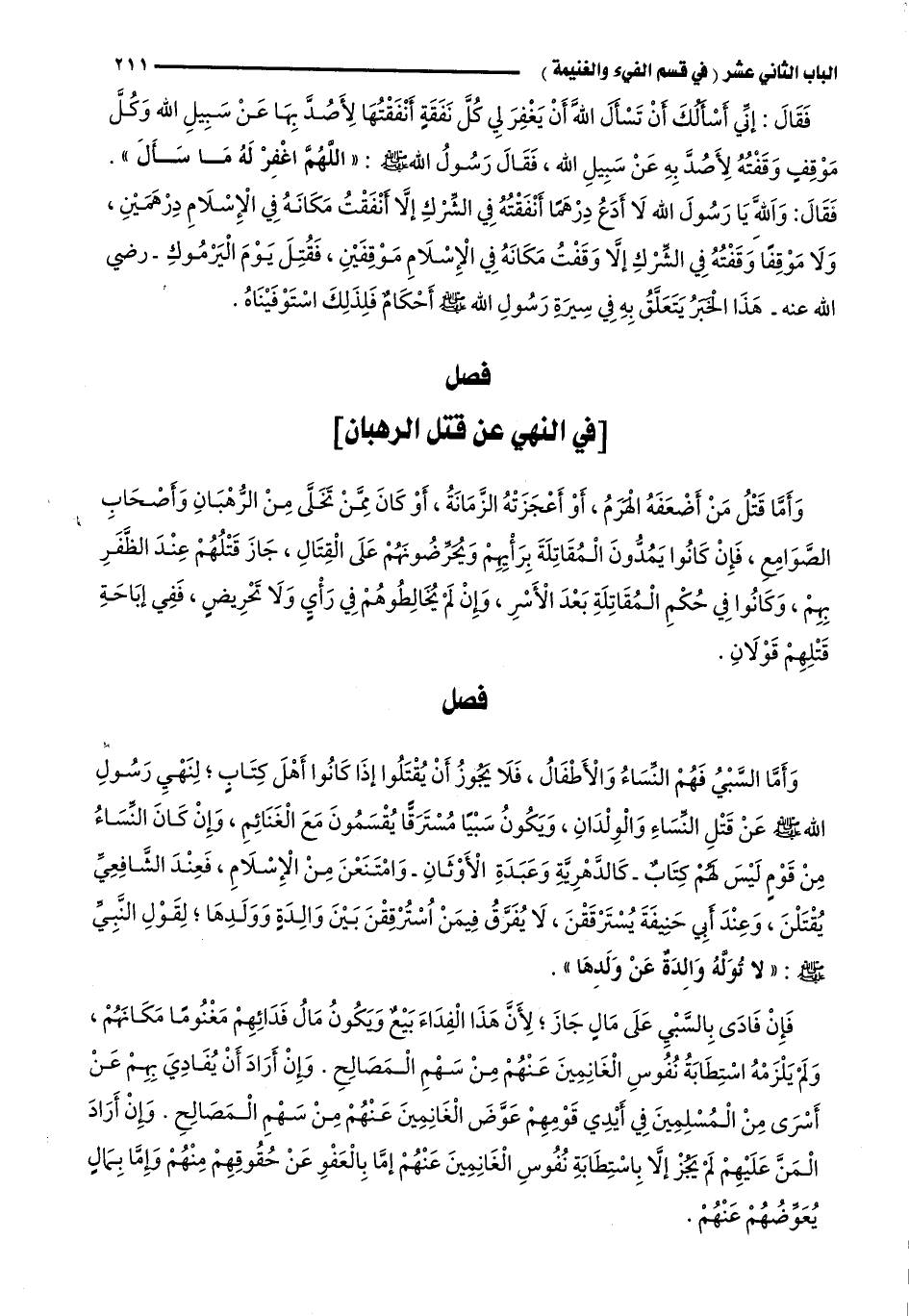 فصل: "في النهي عن قتل الرهبان"