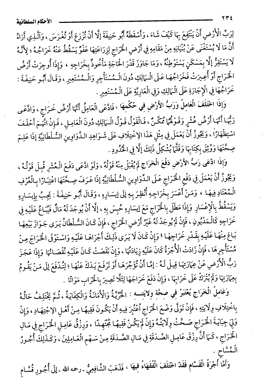 لِرَبِّ الْأَرْضِ أَنْ يَنْتَفِعَ بِهَا كَيْفَ شَاءَ، وَأَسْقَطَهُ أَبُو حَنِيفَةَ إلَّا أَنْ تُزْرَعَ أَوْ تُغْرَسَ، وَاَلَّذِي أَرَاهُ أَنَّ مَا لَا يُسْتَغْنَى عَنْ بُنْيَانِهِ مِنْ مَقَامِهِ فِي أَرْضِ الْخَرَاجِ لِزِرَاعَتِهَا عَفْوٌ يَسْقُطُ عَنْهُ خَرَاجُهُ؛ لِأَنَّهُ لَا يَسْتَقِرُّ إلَّا بِمَسْكَنٍ يَسْتَوْطِنُهُ، وَمَا جَاوَزَ قَدْرَ الْحَاجَةِ مَأْخُوذٌ بِخَرَاجِهِ، وَإِذَا أُوجِرَتْ أَرْضُ الْخَرَاجِ أَوْ أُعِيرَتْ فَخَرَاجُهَا عَلَى الْمَالِكِ دُونَ الْمُسْتَأْجِرِ وَالْمُسْتَعِيرِ، وَقَالَ أَبُو حَنِيفَةَ: خَرَاجُهَا فِي الْإِجَارَةِ عَلَى الْمَالِكِ، وَفِي الْعَارِيَّةِ عَلَى الْمُسْتَعِيرِ.