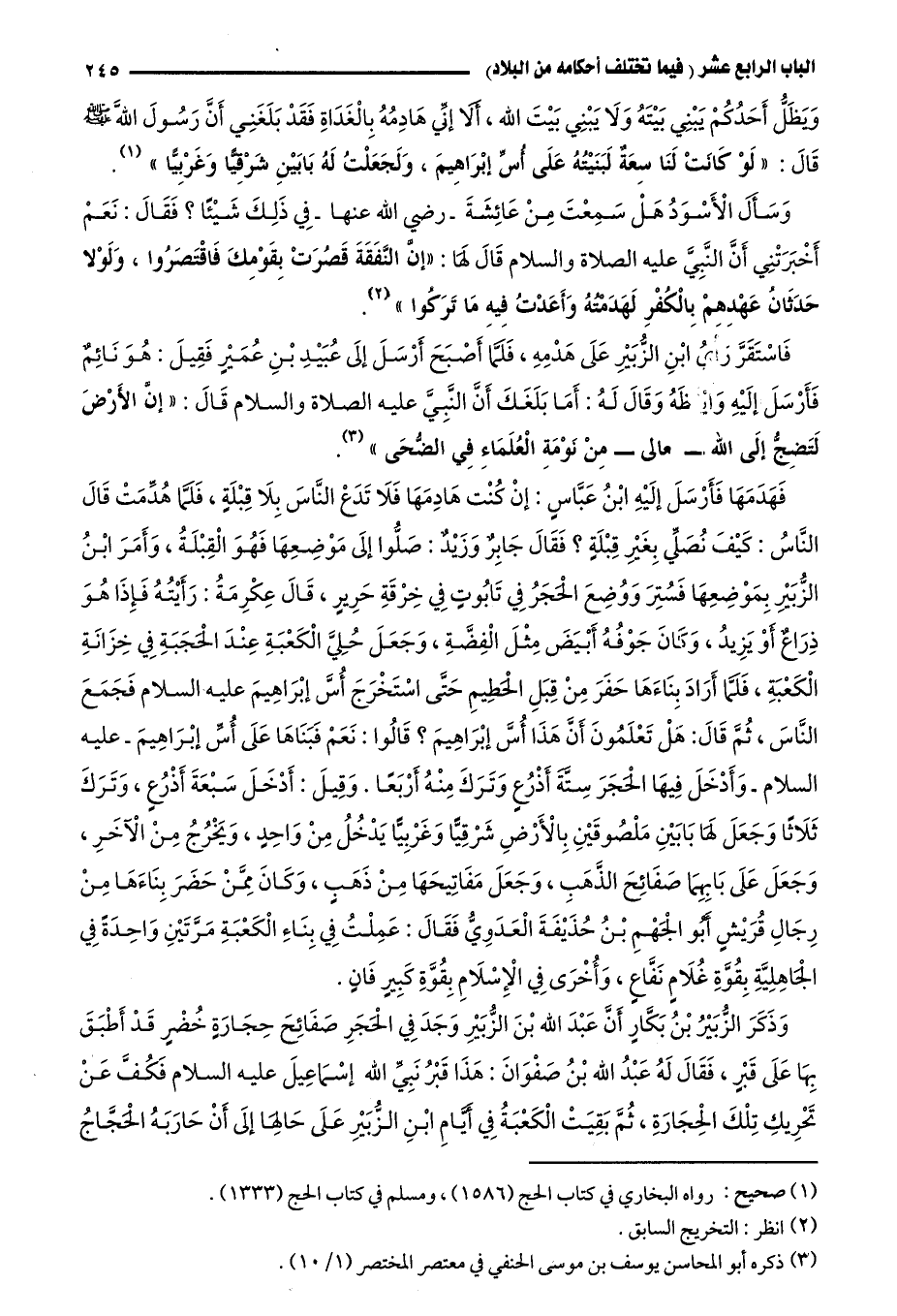 وَيَظَلُّ أَحَدُكُمْ يَبْنِي بَيْتَهُ وَلَا يَبْنِي بَيْتَ اللَّهِ، أَلَا إنِّي هَادِمُهُ بِالْغَدَاةِ، فَقَدْ بَلَغَنِي أَنَّ رَسُولَ اللَّهِ -صَلَّى اللَّهُ عَلَيْهِ وَسَلَّمَ- قَالَ: "لَوْ كَانَتْ لَنَا سِعَةٌ لَبَنَيْتُهُ عَلَى أُسِّ إبْرَاهِيمَ، وَلَجَعَلْتُ لَهُ بَابَيْنِ شَرْقِيًّا وَغَرْبِيًّا" 1.