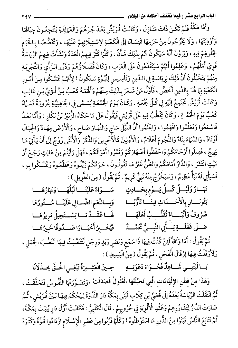 وَأَمَّا مَكَّةُ فَلَمْ تَكُنْ ذَاتَ مَنَازِلَ، وَكَانَتْ قُرَيْشٌ بَعْدَ جُرْهُمَ وَالْعَمَالِقَةِ يَنْتَجِعُونَ جِبَالَهَا وَأَوْدِيَتَهَا، وَلَا يَخْرُجُونَ مِنْ حَرَمِهَا انْتِسَابًا إلَى الْكَعْبَةِ لِاسْتِيلَائِهِمْ عَلَيْهَا، وَتَخَصُّصًا بِالْحَرَمِ لِحُلُولِهِمْ فِيهِ، وَيَرَوْنَ أَنَّهُ سَيَكُونُ لَهُمْ بِذَلِكَ شَأْنٌ، وَكَلَّمَا كَثُرَ فِيهِمُ الْعَدَدُ وَنَشَأَتْ فِيهِمُ الرِّيَاسَةُ قَوِيَ أَمَلُهُمْ، وَعَلِمُوا أَنَّهُمْ سَيَتَقَدَّمُونَ عَلَى الْعَرَبِ، وَكَانَ فُضَلَاؤُهُمْ وَذَوُو الرَّأْيِ وَالتَّجْرِبَةِ مِنْهُمْ يَتَخَيَّلُونَ أَنَّ ذَلِكَ لِرِيَاسَةٍ فِي الدِّينِ وَتَأْسِيسٍ لِنُبُوَّةٍ سَتَكُونُ؛ لِأَنَّهُمْ تَمَسَّكُوا مِنْ أُمُورِ الْكَعْبَةِ بِمَا هُوَ بِالدِّينِ أَخَصُّ، فَأَوَّلُ مَنْ شَعَرَ بِذَلِكَ مِنْهُمْ وَأَلْهَمَهُ كَعْبُ بْنُ لُؤَيِّ بْنِ غَالِبٍ، وَكَانَتْ قُرَيْشٌ تَجْتَمِعُ إلَيْهِ فِي كُلِّ جُمُعَةٍ، وَكَانَ يَوْمُ الْجُمُعَةِ يُسَمَّى فِي الْجَاهِلِيَّةِ عُرُوبَةً، فَسَمَّاهُ كَعْبٌ يَوْمَ الْجُمُعَةِ، وَكَانَ يَخْطُبُ فِيهِ عَلَى قُرَيْشٍ فَيَقُولُ عَلَى مَا حَكَاهُ الزُّبَيْرُ بْنُ بَكَّارٍ: وَأَمَّا بَعْدُ، فَاسْمَعُوا وَتَعَلَّمُوا وَافْهَمُوا، وَاعْلَمُوا أَنَّ اللَّيْلَ سَاجٍ، وَالنَّهَارَ صَاحٍ، وَالْأَرْضَ مِهَادٌ، وَالْجِبَالَ أَوْتَادٌ، وَالسَّمَاءَ بِنَاءٌ، وَالنُّجُومَ أَعْلَامٌ، وَالْأَوَّلِينَ كَالْآخَرِينَ، وَالذَّكَرَ وَالْأُنْثَى زَوْجٌ إلَى أَنْ يَأْتِيَ مَا يَهِيجُ، فَصِلُوا أَرْحَامَكُمْ، وَاحْفَظُوا أَصْهَارَكُمْ، وَثَمِّرُوا أَمْوَالَكُمْ، فَهَلْ رَأَيْتُمْ مِنْ هَالِكٍ رَجَعَ أَوْ مَيِّتٍ انْتَشَرَ، وَالدَّارُ أَمَامَكُمْ، وَالظَّنُّ غَيْرُ مَا تَقُولُونَ، حَرَمُكُمْ زَيِّنُوهُ وَعَظِّمُوهُ، وَتَمَسَّكُوا بِهِ، فَسَيَأْتِي لَهُ نَبَأٌ عَظِيمٌ، وَسَيَخْرُجُ مِنْهُ نَبِيٌّ كَرِيمٌ، ثُمَّ يَقُولُ "مِنَ الطَّوِيلِ":