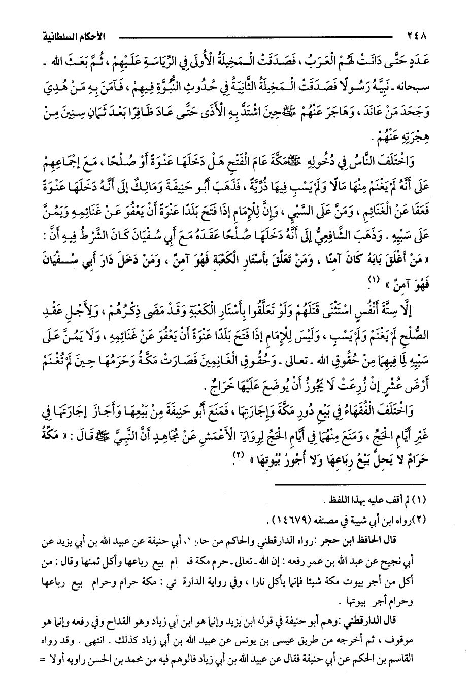 قال الحافظ ابن حجر: رواه الدارقطني والحاكم من حديث أبي حنيفة عن عبيد الله بن أبي يزيد عن أبي نجيح عن عبد الله بن عمر رفعه: إن الله تعالى حرم مكة، فحرام بيع رباعها وأكل ثمنها، وقال: من أكل من أجر بيوت مكة شيئًا فإنما يأكل نارًا، وفي رواية الدارقطني: مكة حرام وحرام بيع رباعها وحرام أجر بيوتها.